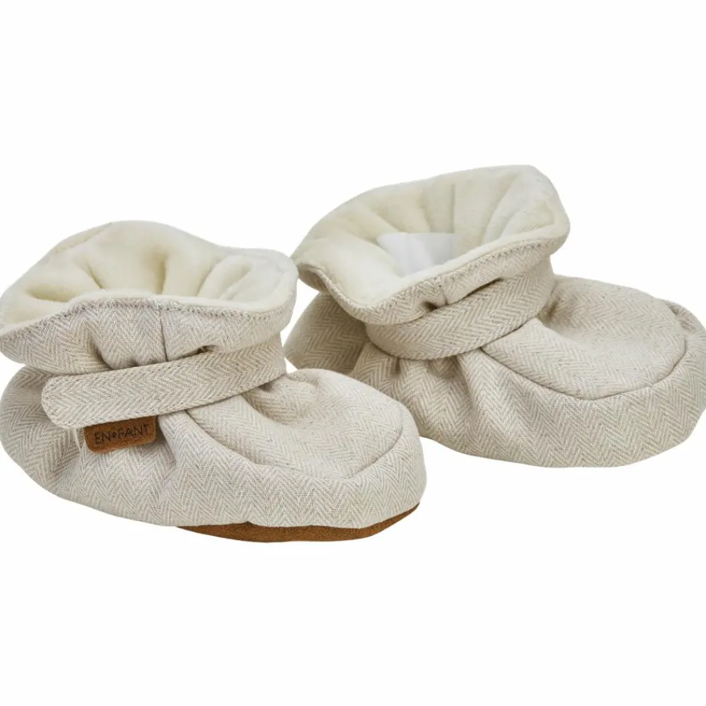En Fant baby hjemmesko med velcro. Super fine hjemmesko med velcrolukning og elastik rundt om anklen, som sikrer at sutskoene sidder helt perfekt på barnets fødder. Indersiden er med blødt for og bunden er af ruskind, som giver et godt fodfæste. De skridsikre sko fra En Fant holder barnets fødder tørre og lune.