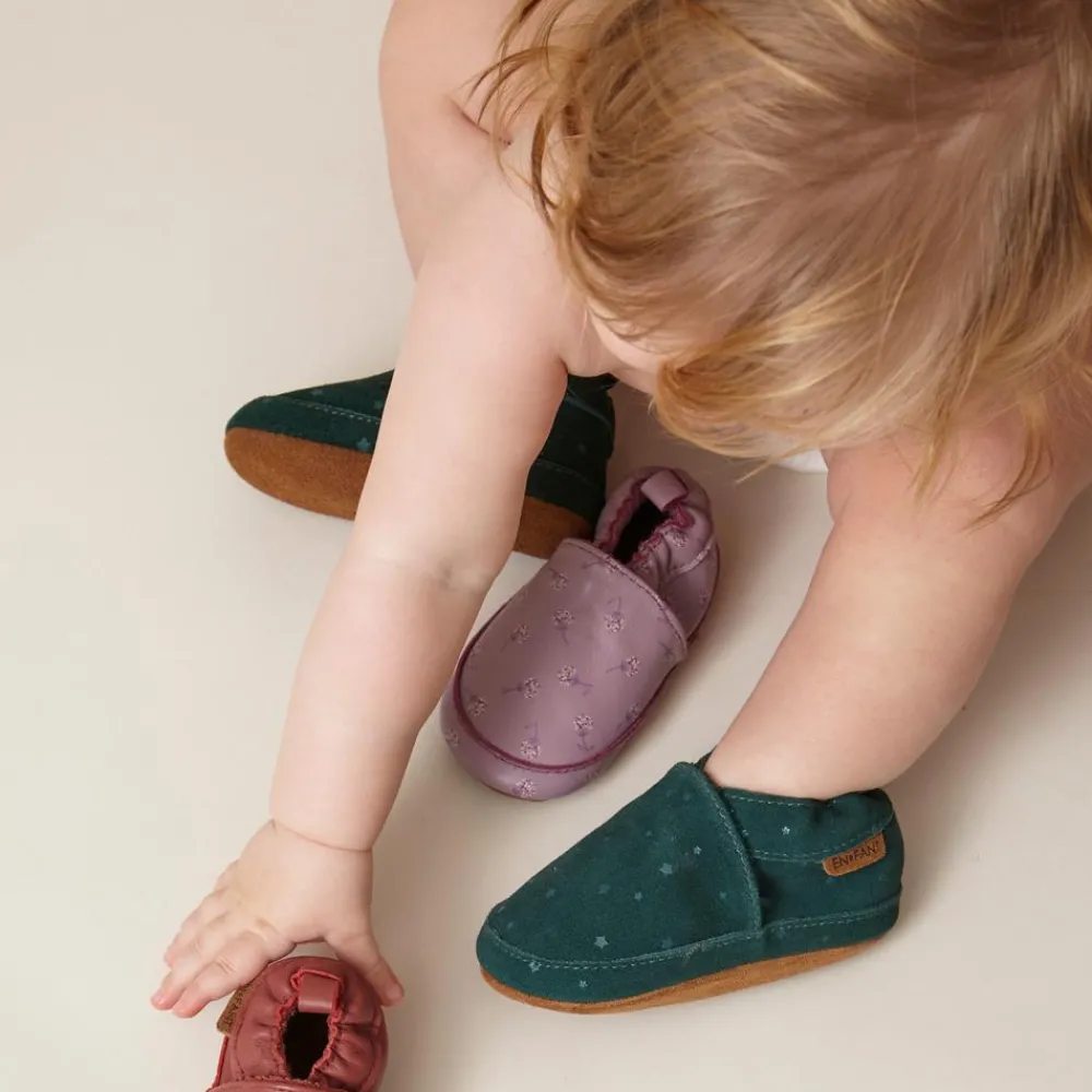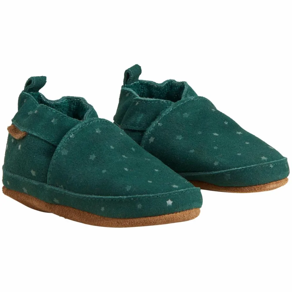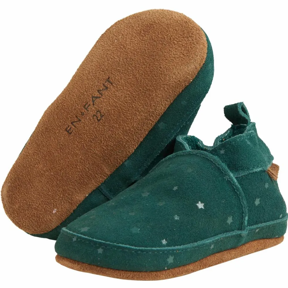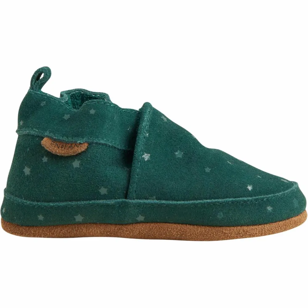 En Fant hjemmesko med stjerner. Super fine kvalitets hjemmesko af ruskind. Hjemmeskoene har små stjerner og en bund af 100% ruskind, dette sikrer at de små står bedre fast og tager samtidig noget af kulden fra gulvet. Hjemmeskoene kan ved hjælp af en elastik give sig, så de er lette at tage på.