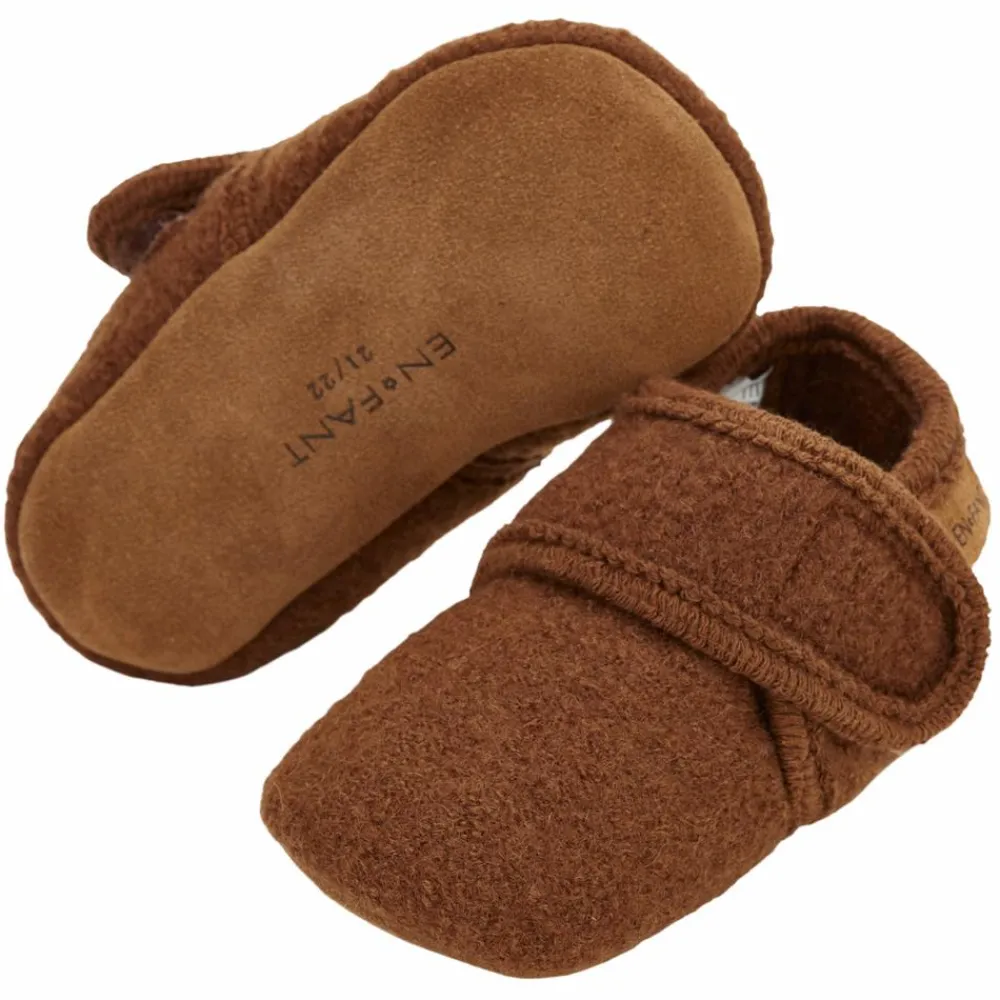 En Fant uld hjemmesko til baby og børn. Super søde filt hjemmesko med bred velcrolukning, som gør det let at tage skoen af og på. De dejlige hjemmesko har en solid ruskindsbund, der sikrer et godt fodfæste og samtidig holder kulden væk fra barnets fødder. Hjemmeskoene er lavet af uld, som gør dem dejligt varme og praktiske.