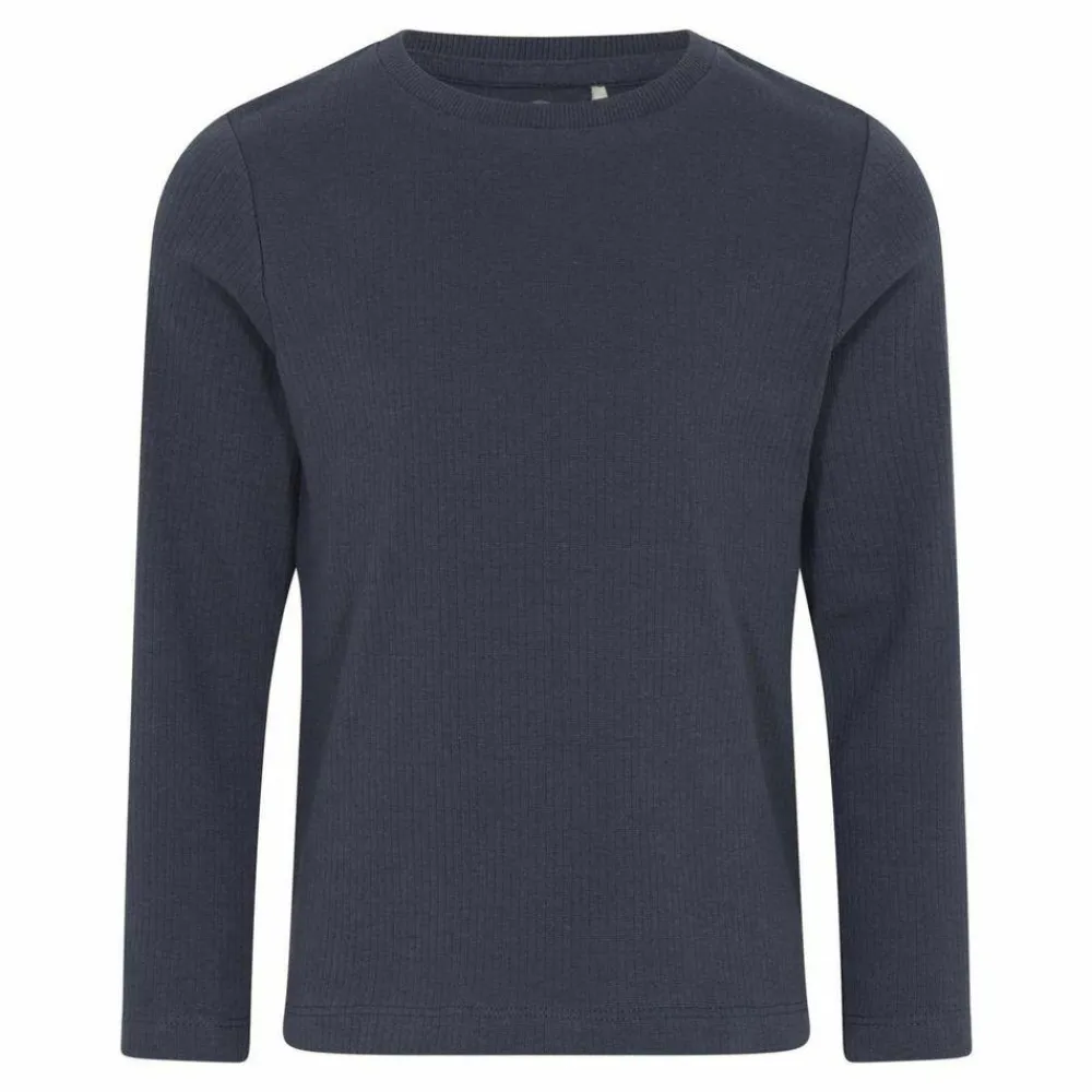 En Fant langærmet bluse med økologisk bomuld. Super fin og tynd ribstrikket bluse med lange ærmer og rund halsudskæring.