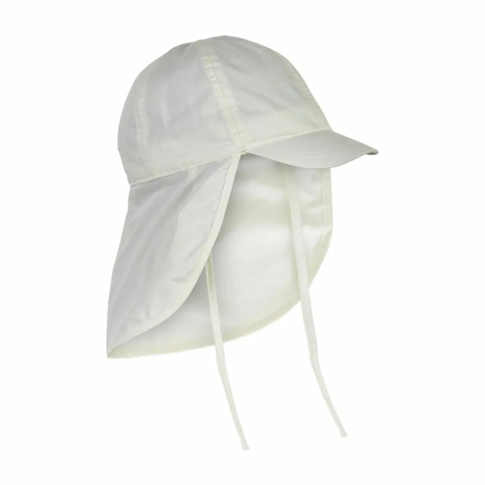 En Fant børne solhat. Smart sommerhue med praktisk kasketskærm og lang skygge bagpå. Elastik på baghovedet og snore under hagen sikrer, at hatten sidder godt på barnets hoved.