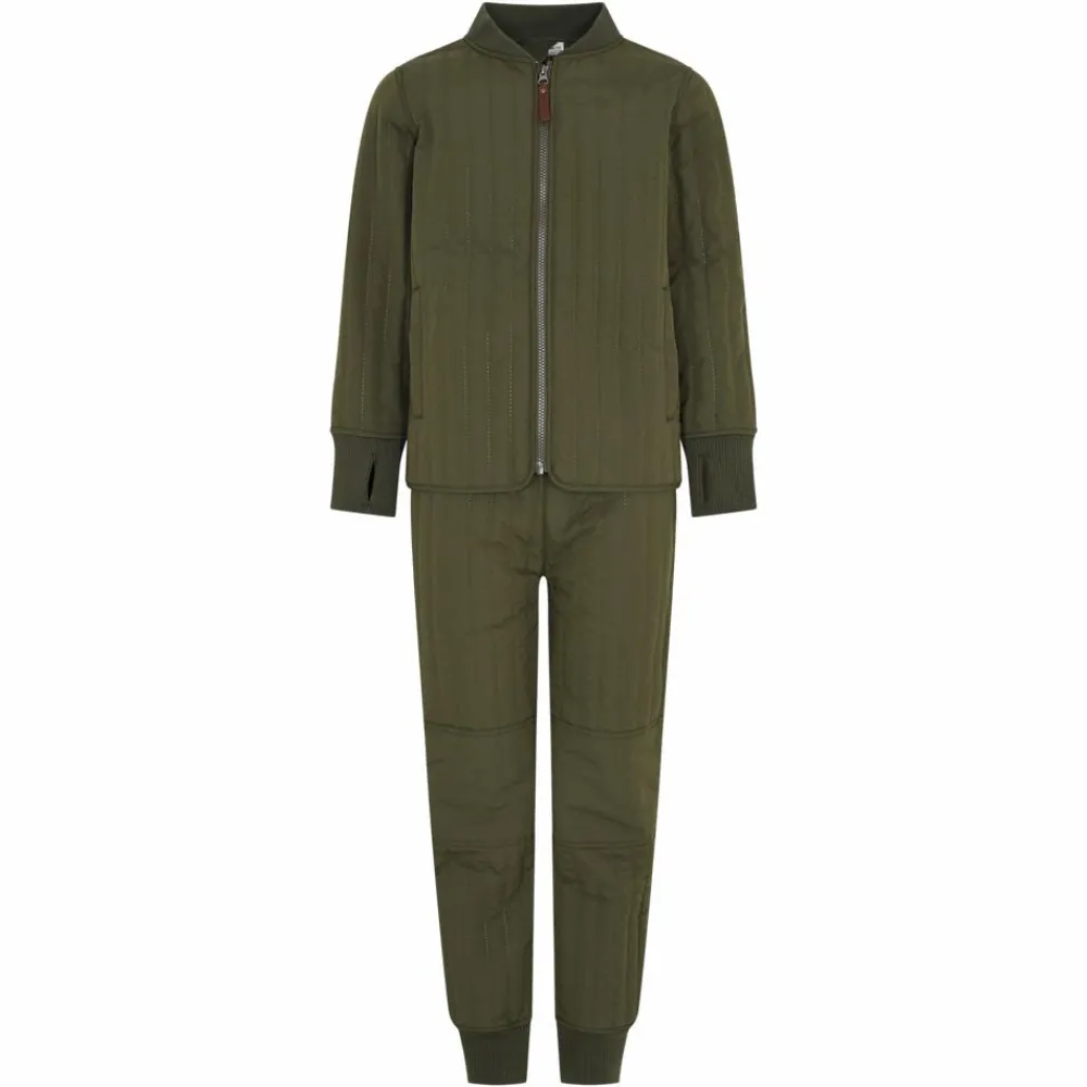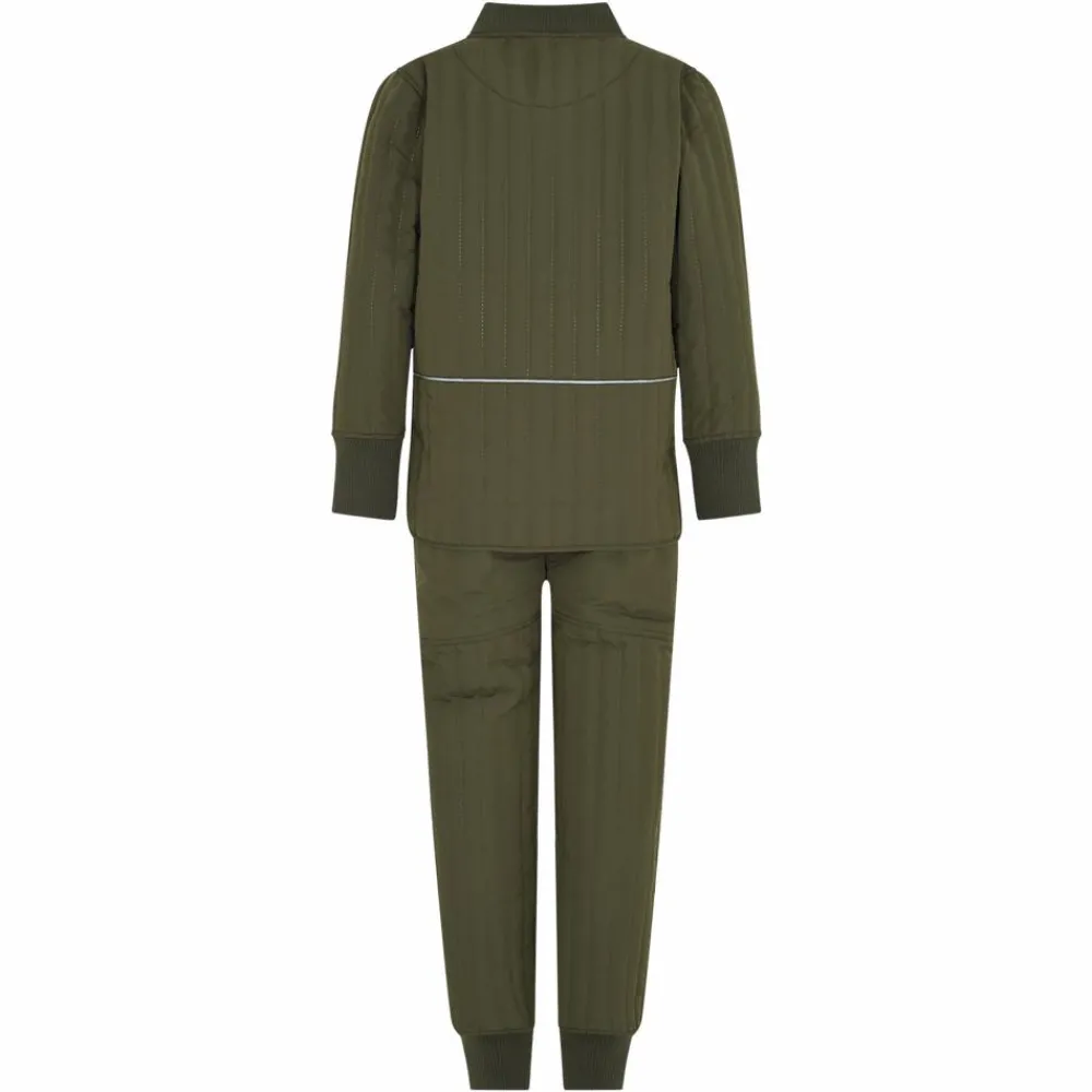 En Fant børne termosæt. Todelt sæt bestående af en termojakke samt et par termobukser. Termojakken er super fin med lodrette syninger. I ærmerne er der en bred ribkant med åbning til tommelfinger. Jakken har lynlåslukning og to lige lommer foran. Bagpå har jakken en vandret smal refleks. Termobukserne matcher jakken med lodrette syninger og er ekstra slidstærke på bagdelen samt knæene. I buksebenene er der en bred ribkant og på indersiden i taljen kan bukserne justeres strammere.