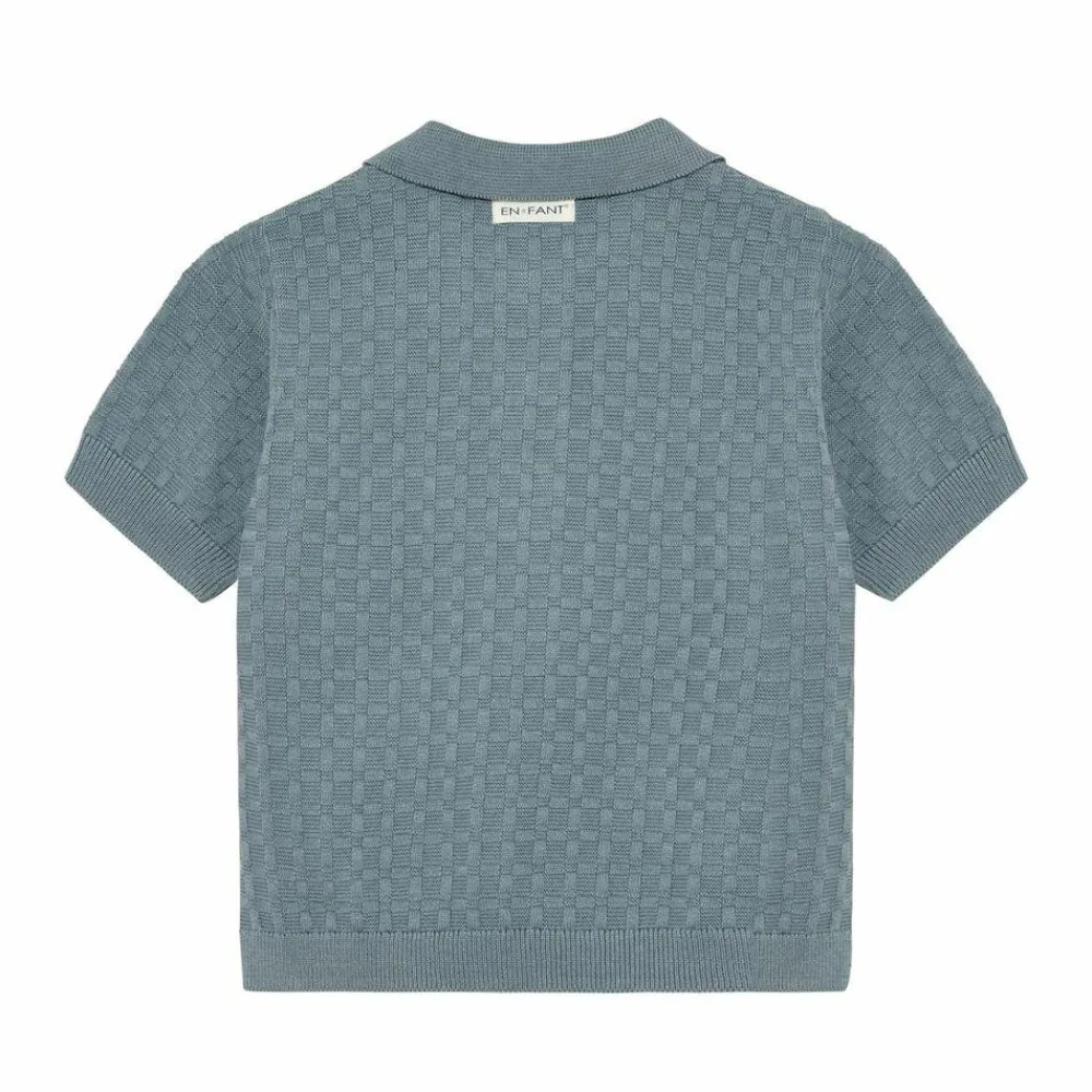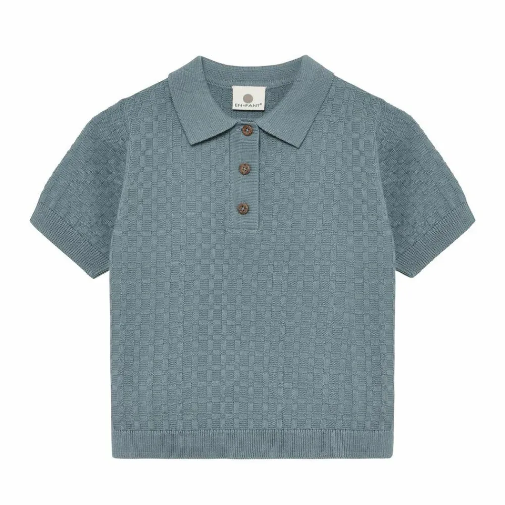 En strikket polo i farven citadel giver et roligt udtryk og en behagelig fornemmelse på kroppen. Den bløde kvalitet i 100% økologisk bomuld lader huden ånde, mens den fine struktur og rib ved ærmer og kant holder formen. De tre mørke knapper i halsen gør det nemt at justere og klæde på.