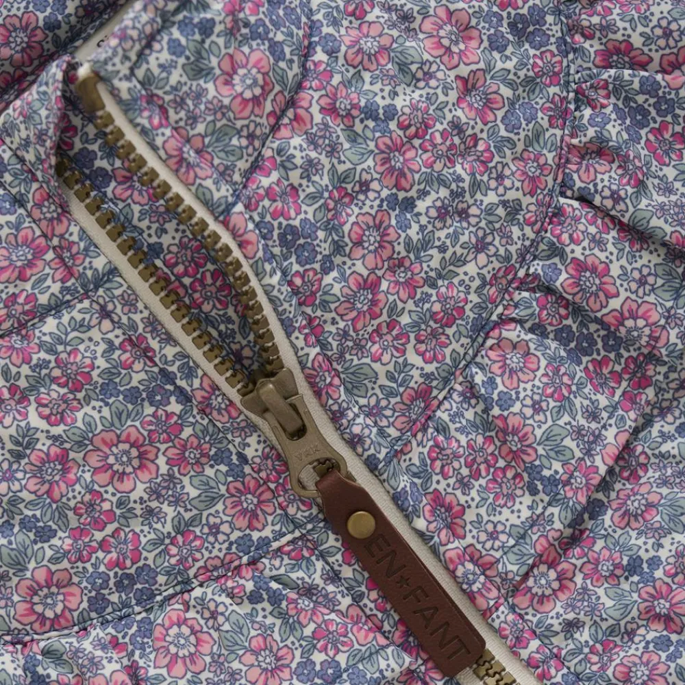 En Fant termojakke med all-over print. Jakken har flæser fra skulderen ned over brystet. Jakken har en lynlåslukning, og er lavet ekstra blødt materiale, som sikrer, at den er behagelig at bære.