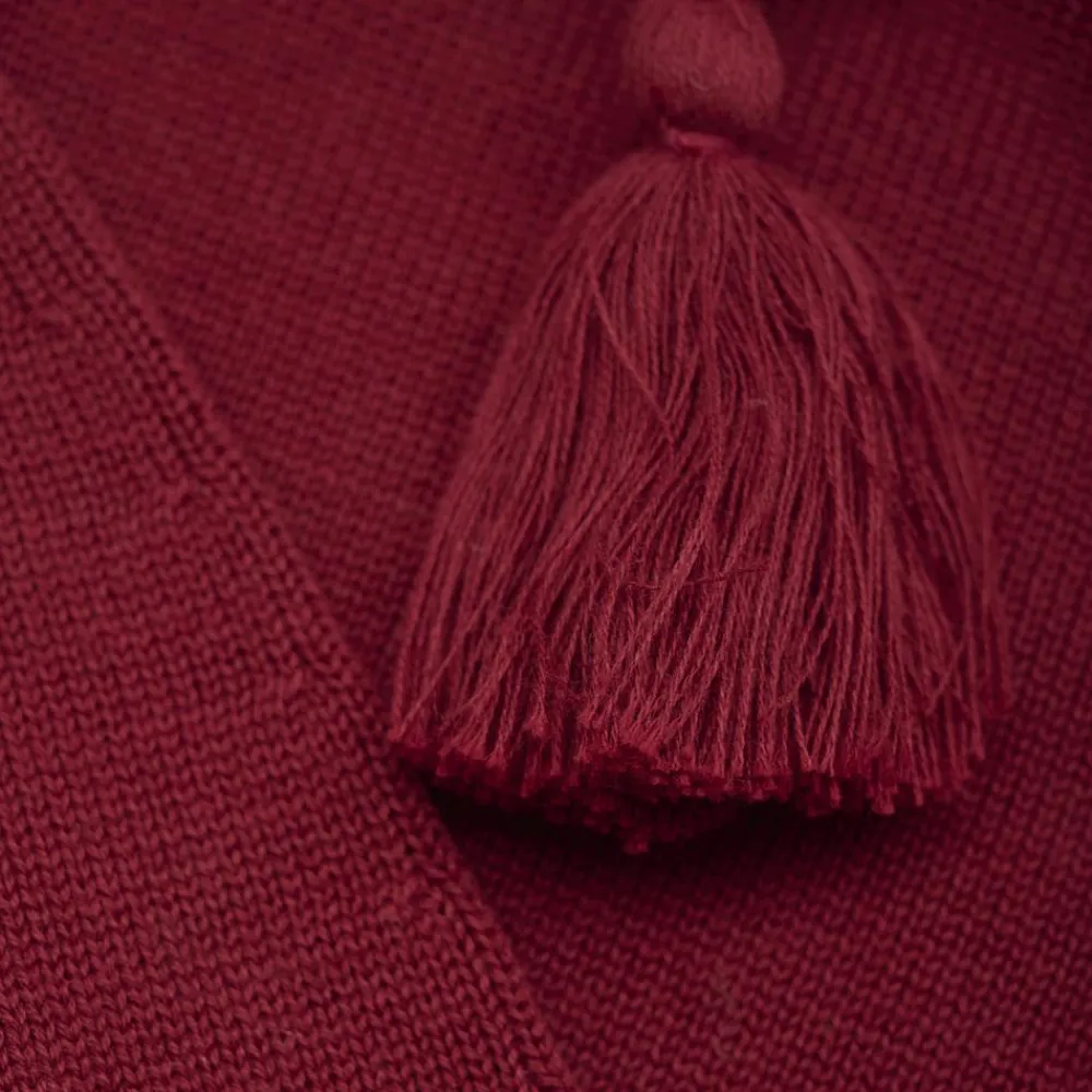 Strikket Fixoni julehue til baby. Den søde nissehue har en ribkant og en fin rød kvast. Strikket i blødt, økologisk bomuld.