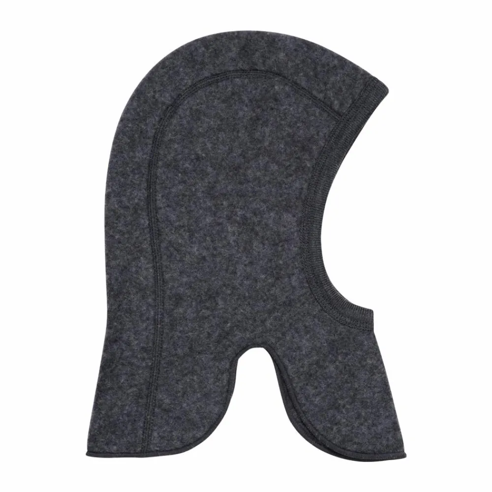 Praktisk elefanthue i blødt merino uld. Huen er ekstra lang foran og bagi for at gøre den stram omkring skulderne. Huen sidder tæt omkring ansigtet.