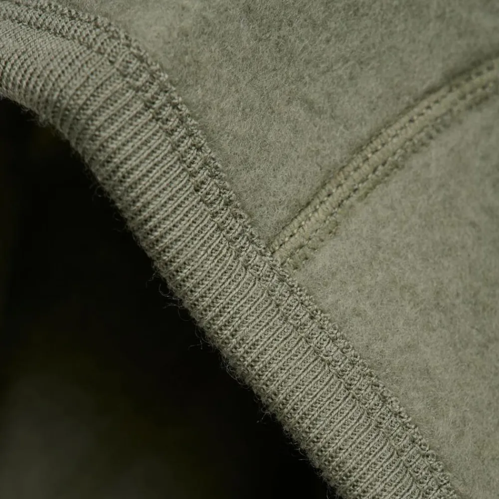 Praktisk elefanthue i blødt merino uld. Huen er ekstra lang foran og bagi for at gøre den stram omkring skulderne. Huen sidder tæt omkring ansigtet.