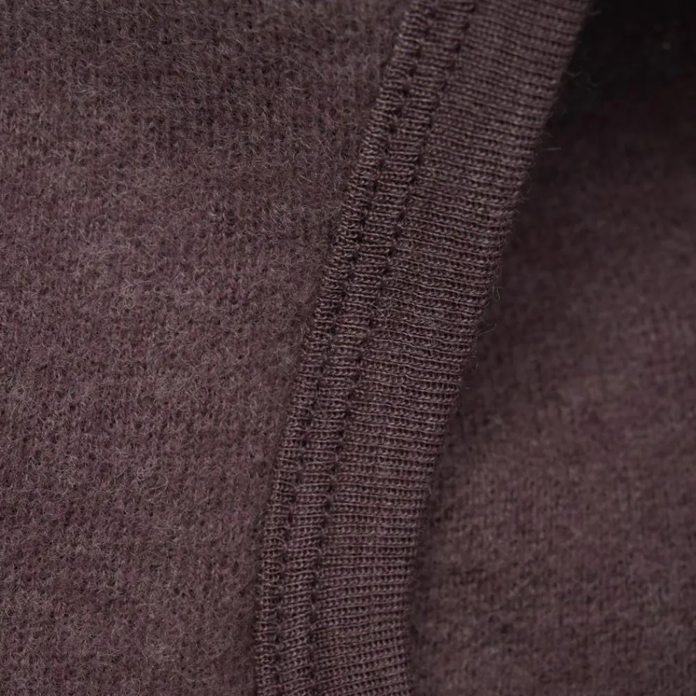 Praktisk elefanthue i blødt merino uld. Huen er ekstra lang foran og bagi for at gøre den stram omkring skulderne. Huen sidder tæt omkring ansigtet.