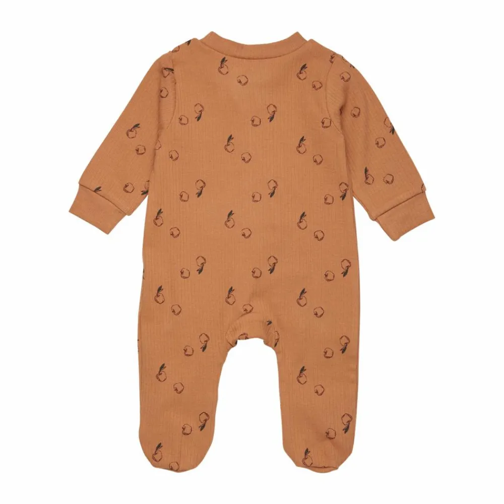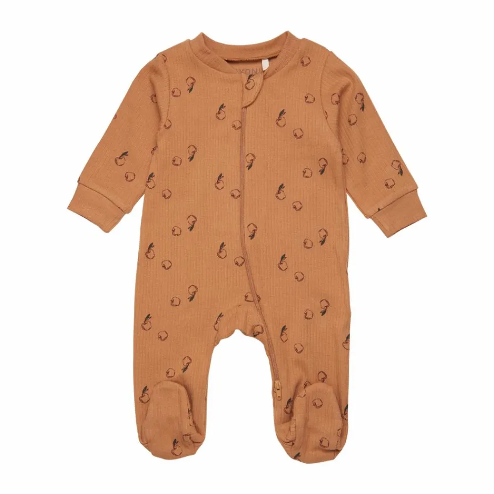 Praktisk natdragt med fødder, så du ikke skal bekymre dig om kolde fusser. Heldragten er designet med lynlåslukning med hage-beskyttelse. Lynlåsen fortsætter ned langs det ene ben, så af- og påklædning samt bleskift, er lettere. Natdragten har et all-over print og er lavet af økologisk bomuld, som er GOTS-certificeret.