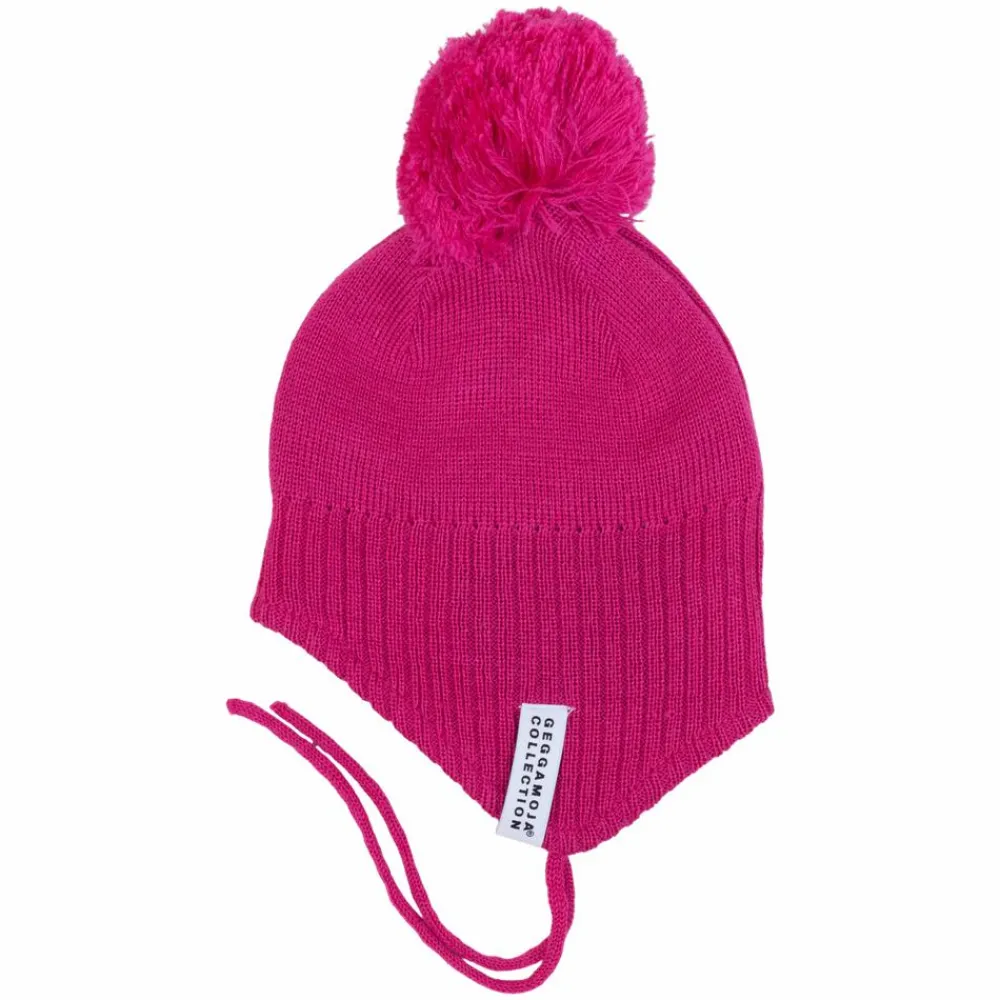 Geggamoja pige strik hue med uld, til de helt små. Huen i uldmix er dejlig varm og strikhuen er designet med indvendigt for, som føles blødt og behageligt mod barnets hud. Børnehuen er fremstillet i et fint strikmønster og den har en fin kvast på toppen, samt snørelukning, som bindes under hagen.