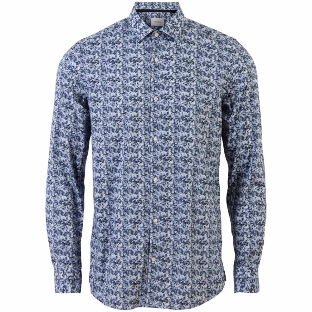 Gnious herre langærmet skjorte med all-over mønster, gennemgående knaplukning samt krave.