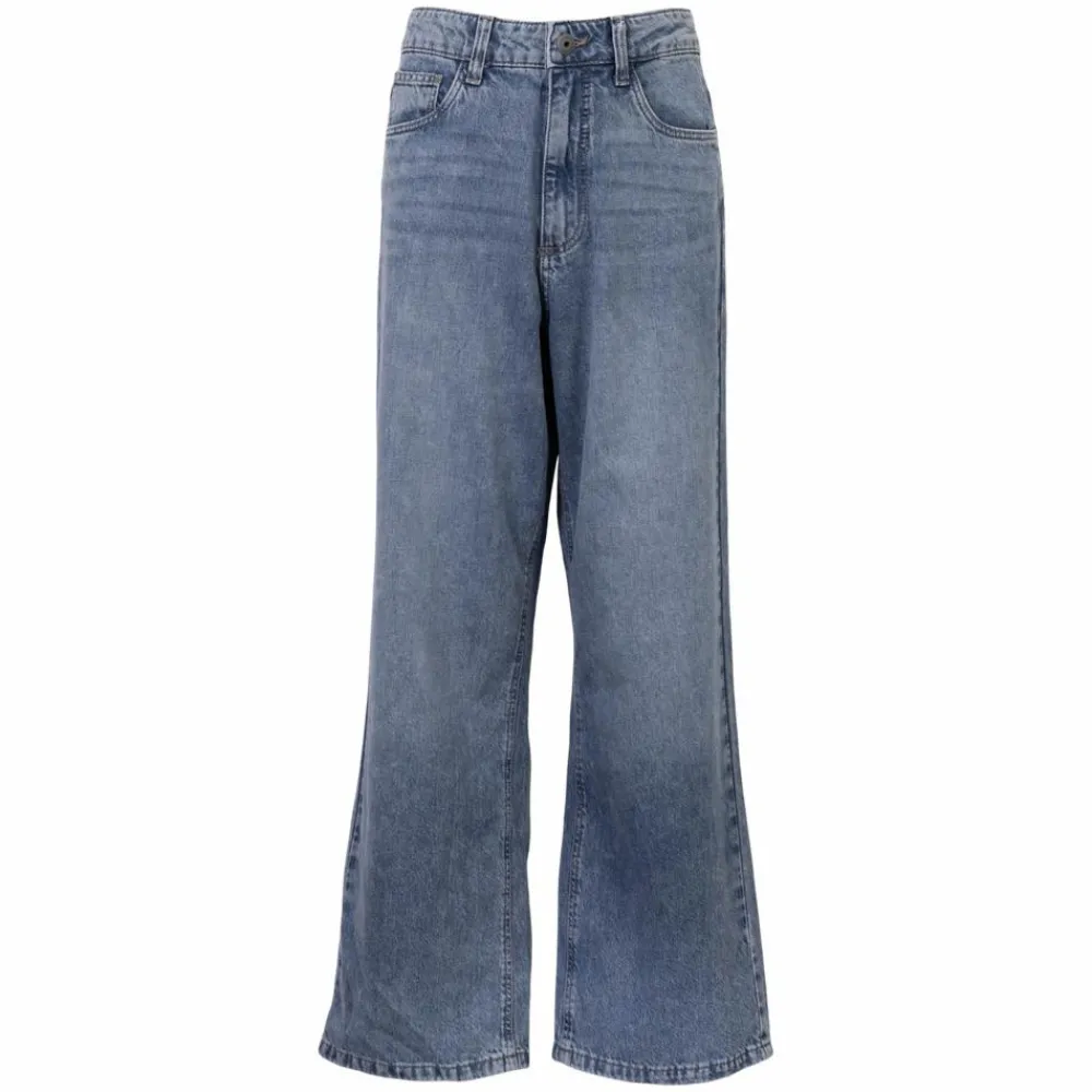 Et par skater jeans i medium blue denim med roligt udtryk og en behagelig, rummelig pasform. Taljen kan justeres, så de kan hænge nede på hoften, samtidig giver de lige, vide ben plads til bevægelse hele dagen. Klassisk femlommers design og lukning med knap og lynlås fuldender det tidløse look.