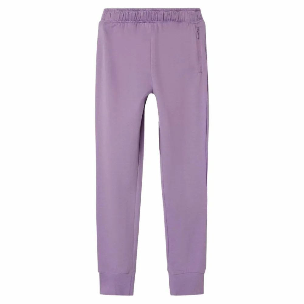 Guppy pige joggingbukser. Bukserne har elastik og justerbar talje, som gør at bukserne tilpasser sig om livet. Bukserne har en sidelomme med lynlåslukning. Bukserne har ribkant i bunden.