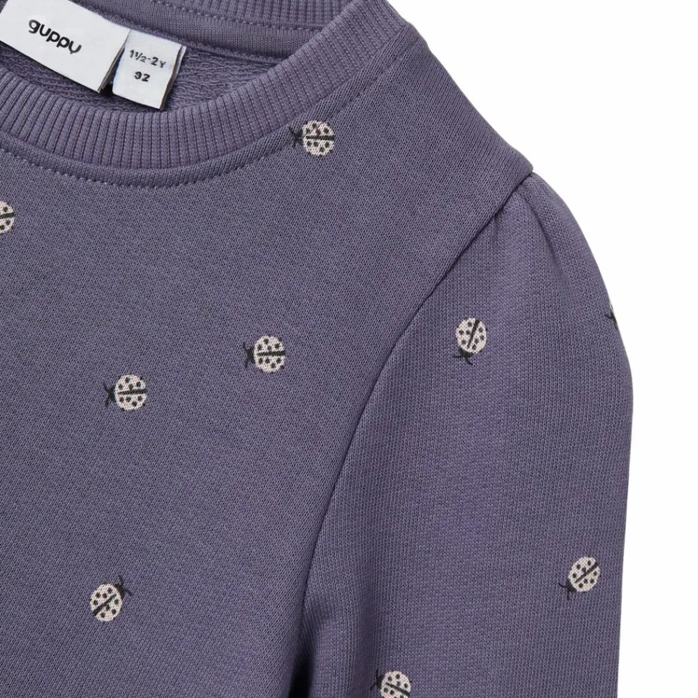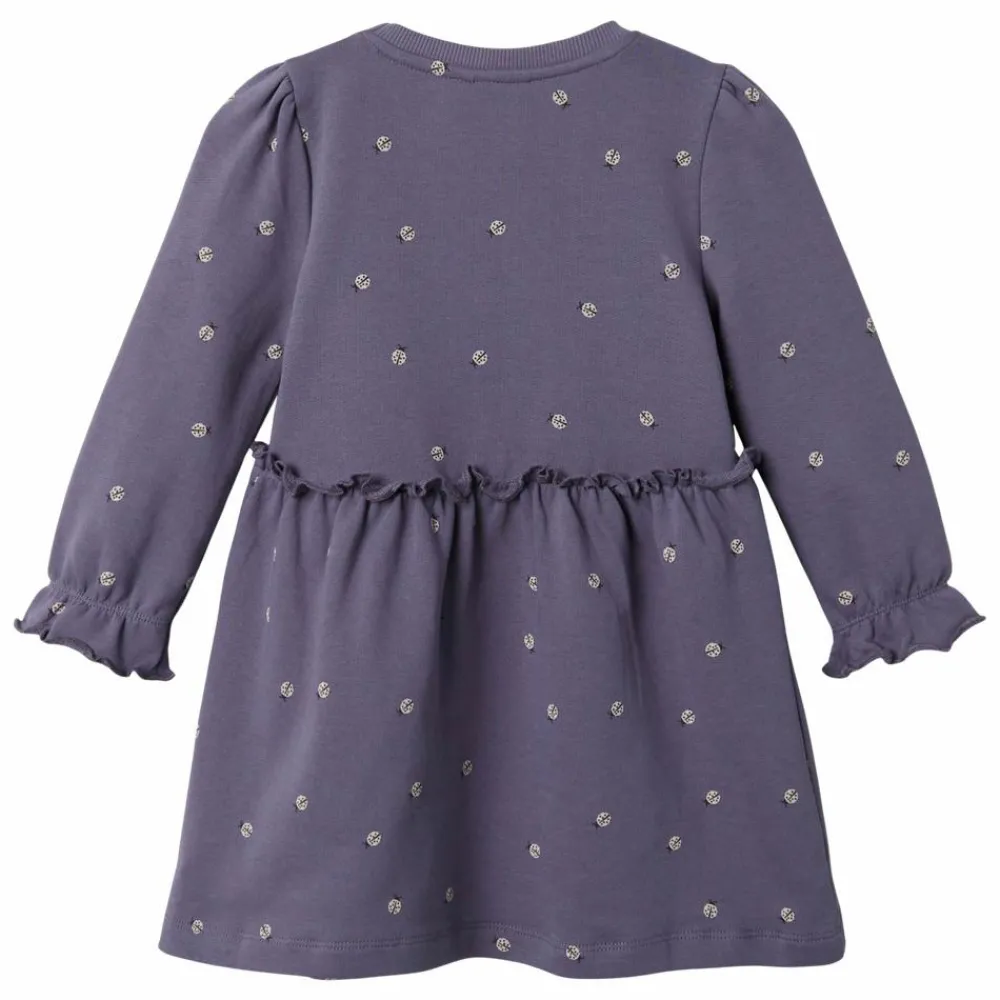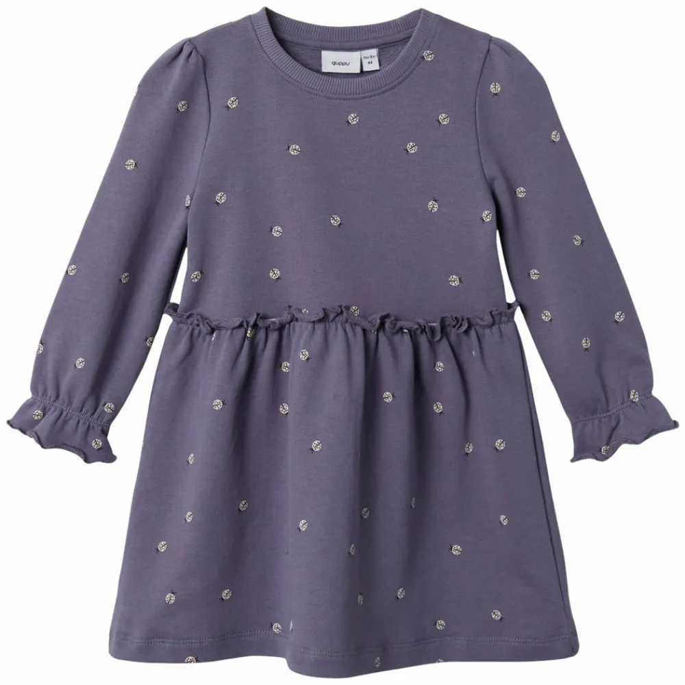 Guppy kjole med all-over print. Kjolen har flæsedetaljer ved taljen samt ærmerne. Kjolen har en rund halsudskæring og lange ærmer.