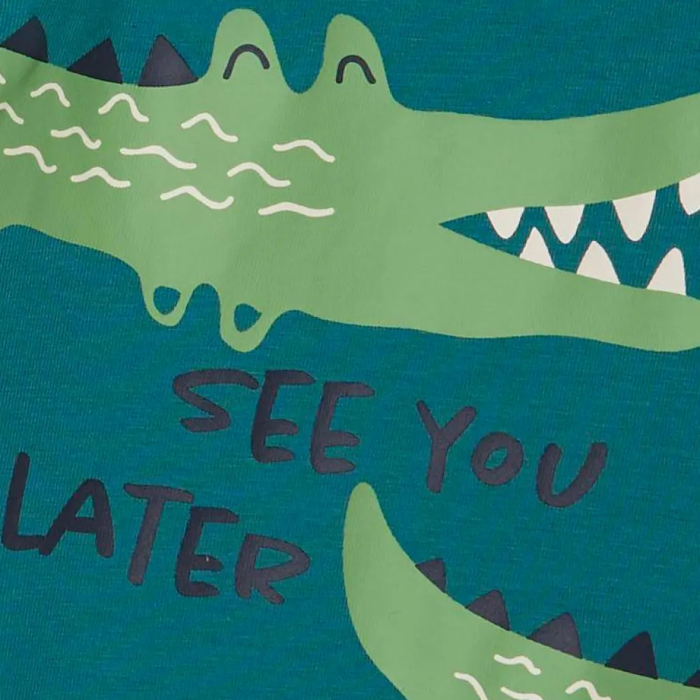 Guppy baby drenge bodystocking. Bodystockingen har print på fronten, samt ribkant om halsen og om benene. Bodystockingen har 2 knapper ved venstre skulder, samt 3 knapper i bunden.