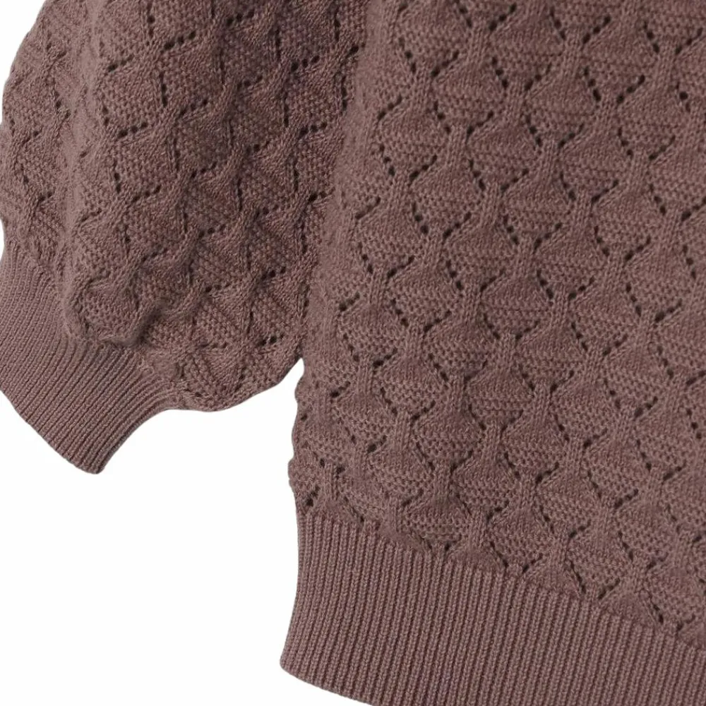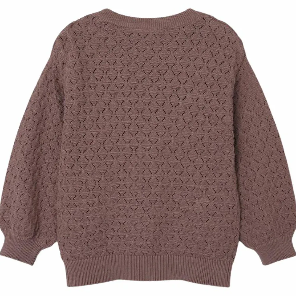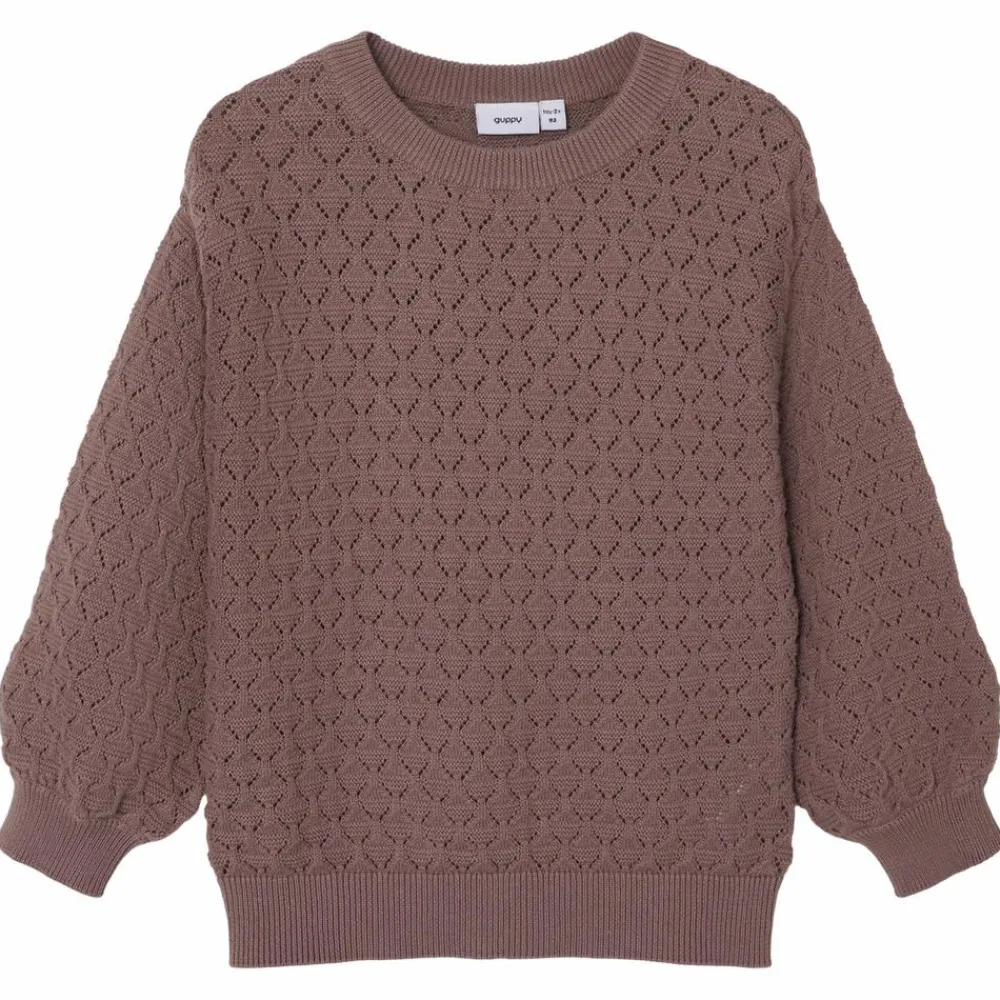 Guppy strikket bluse med flot hulmønster. Blusen har lange ærmer, en rund halsudskæring samt en bred ribkant langs alle åbninger.