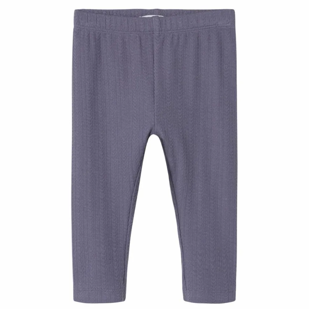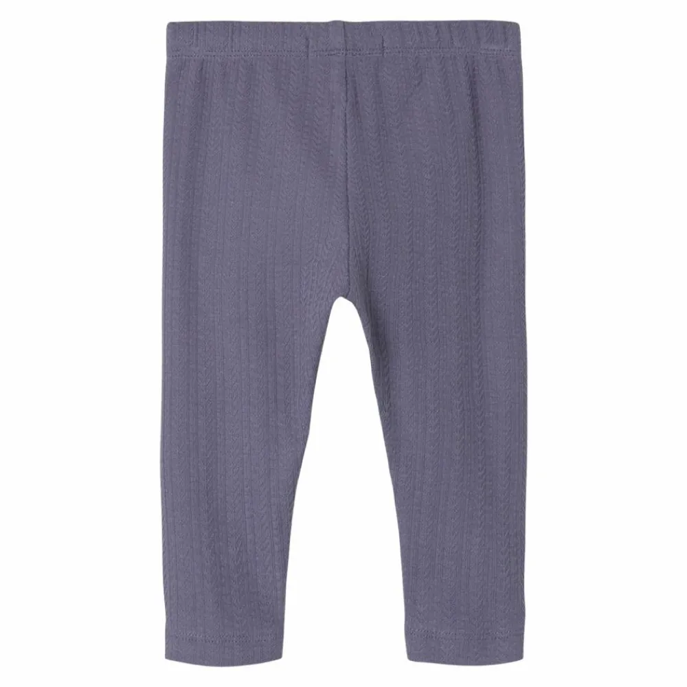Guppy leggings i ensfarvet lilla. Bukserne har fine mønster deltaljer ned langs bukserne. Leggings er i strækbart materiale og har elastik i taljen.