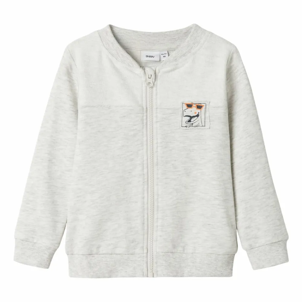 Guppy sweat cardigan i ensfarvet grå. Cardiganen har ribkant ved hals, ærmer og nederst på trøjen. Trøjen har en mærke på venstre side.
