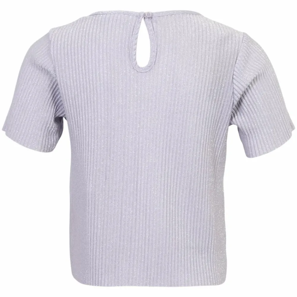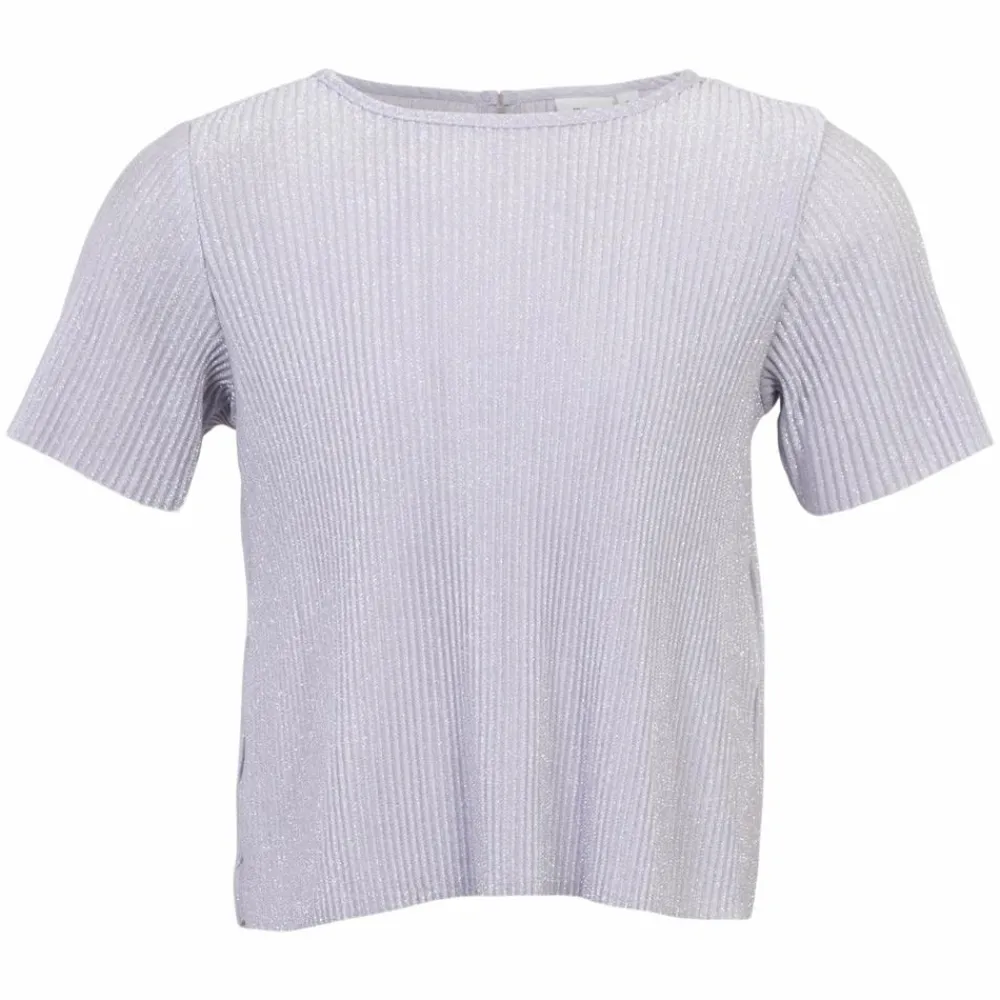 Guppy Hollis glimmer bluse. T-shirten er fremstillet i et let og behageligt materiale med ribstrukturer og glimmer. Den har rund halsudskæring og korte ærmer.