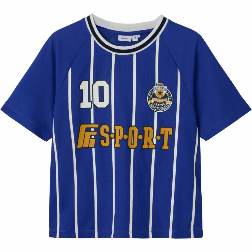 Sporty t-shirt i en åndbar mesh kvalitet. T-shirten har en rund halsudskæring i stribet rib, samt et cool print og lodrette striber. Perfekt til hverdagsbrug eller til sport.