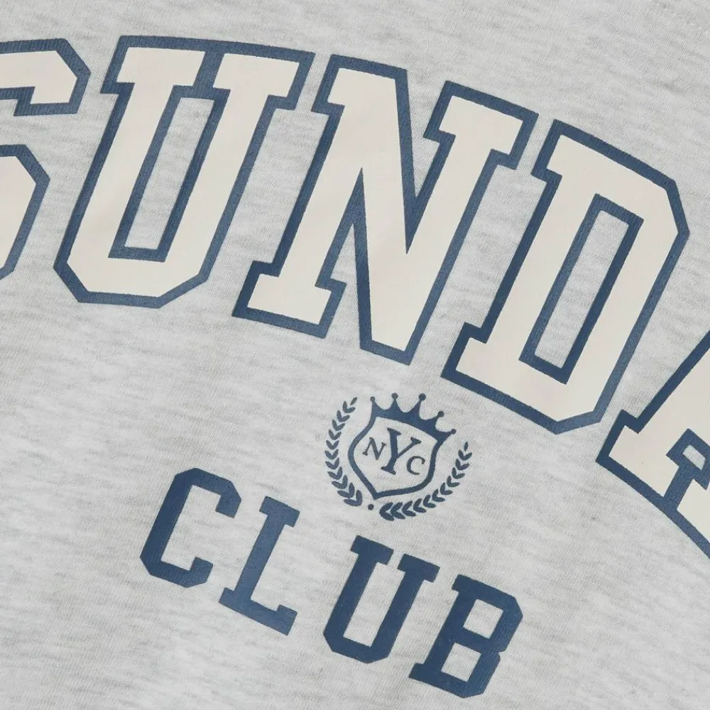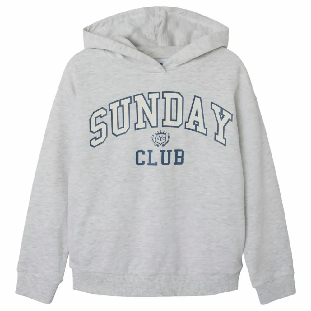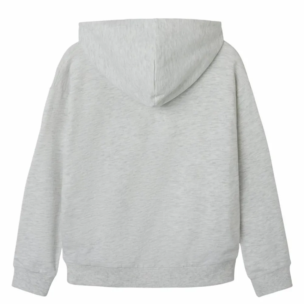Blød og behagelig sweatshirt med hætte. Hættetrøjen er gråmeleret med ribkanter ved ærmer og bund. På fronten er der et print, der giver et sporty udtryk. Perfekt til fritid og afslappede dage.
