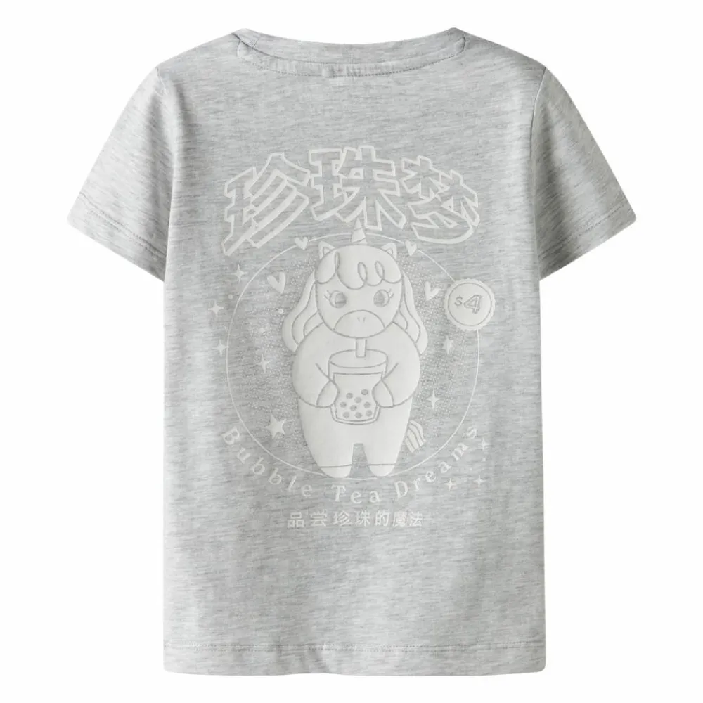 Gråmeleret t-shirt fra Guppy med rund hals og et sødt print på ryggen. Passer perfekt til et afslappet look med sweatpants eller jeans.