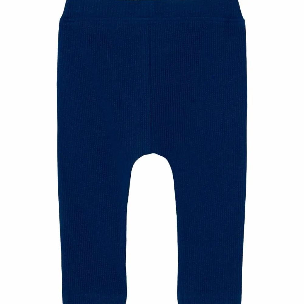 Små bukser til babyer. Bukserne har en flot blå farve og er lavet i behageligt materiale.