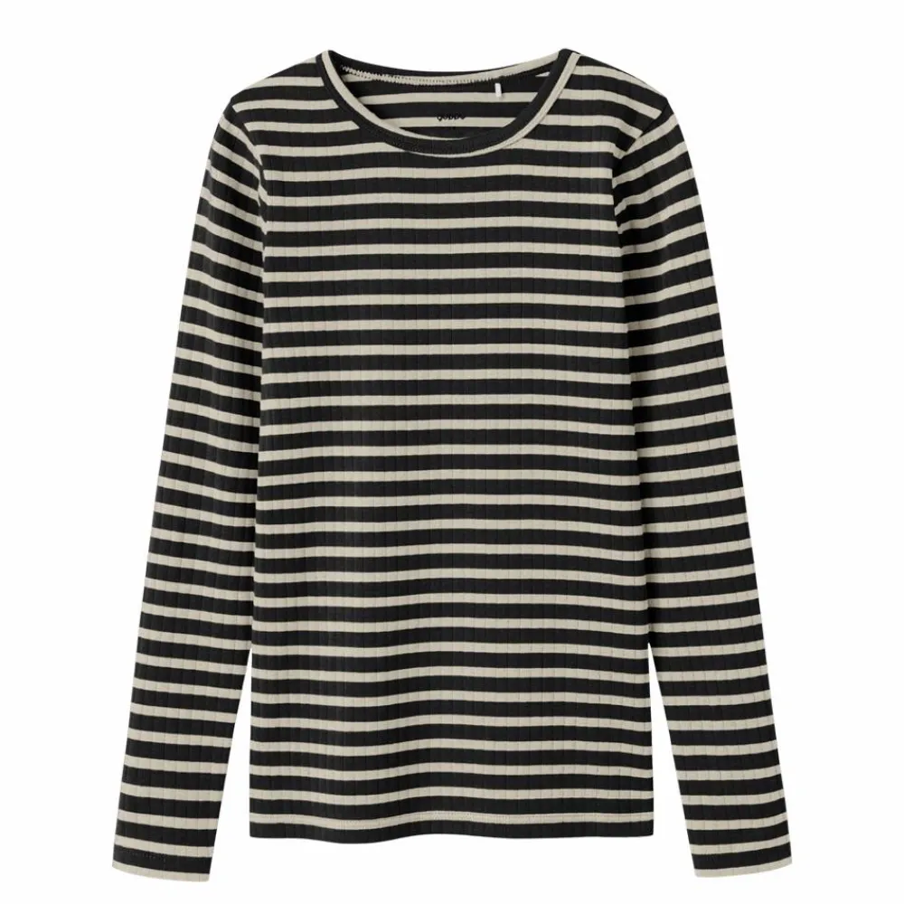 Guppy bluse i bred rib og striber. Blusen har lange ærmer, en rund hals udskæring og er blød og meget elastisk i materialet.
