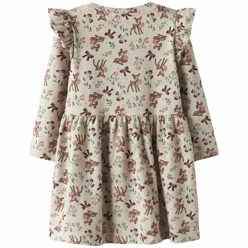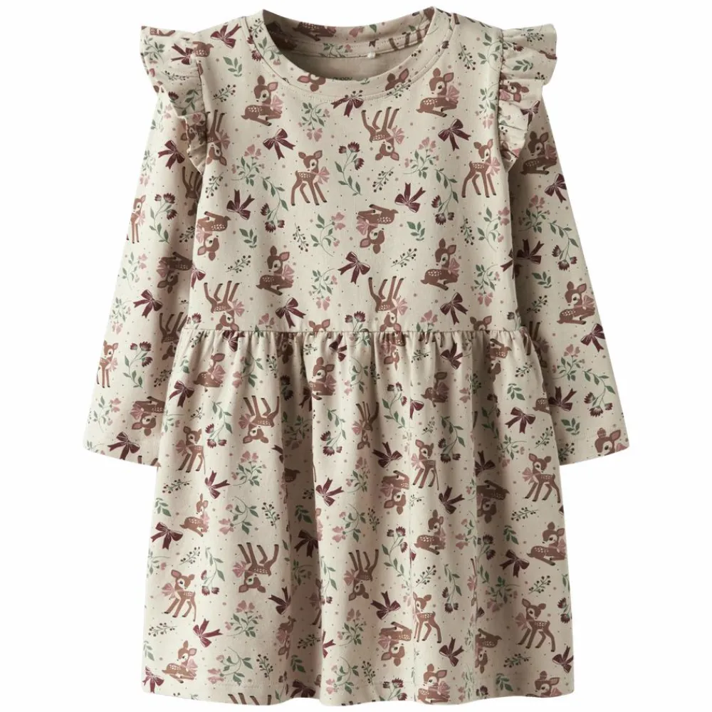 Guppy pige kjole med all-over print. Kjolen har en fin flæsekant ved skuldrene og er skåret under brysteten. Den har en rund halsudskæring og lange ærmer. Sød og feminin kjole – ideel til både hverdag og fest.