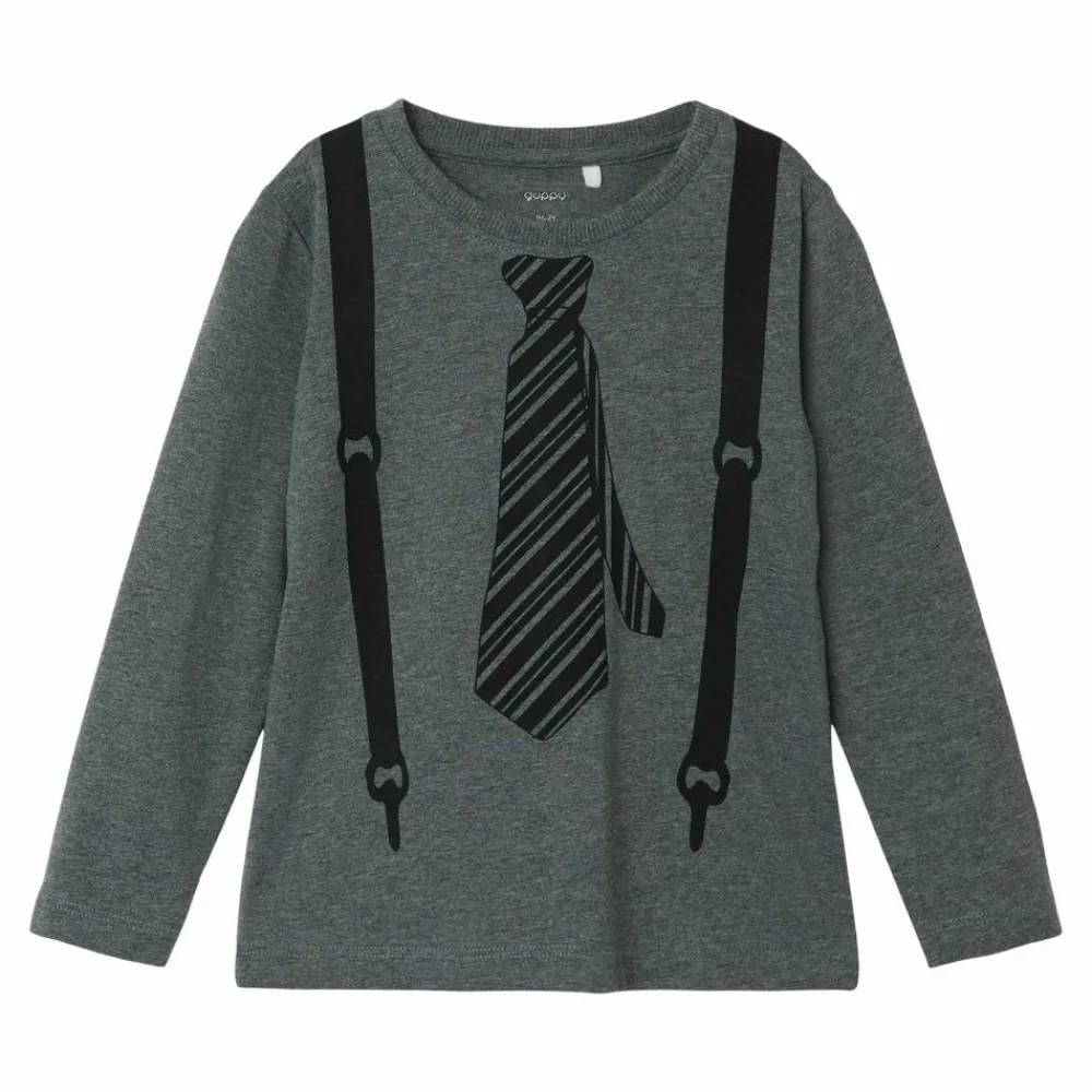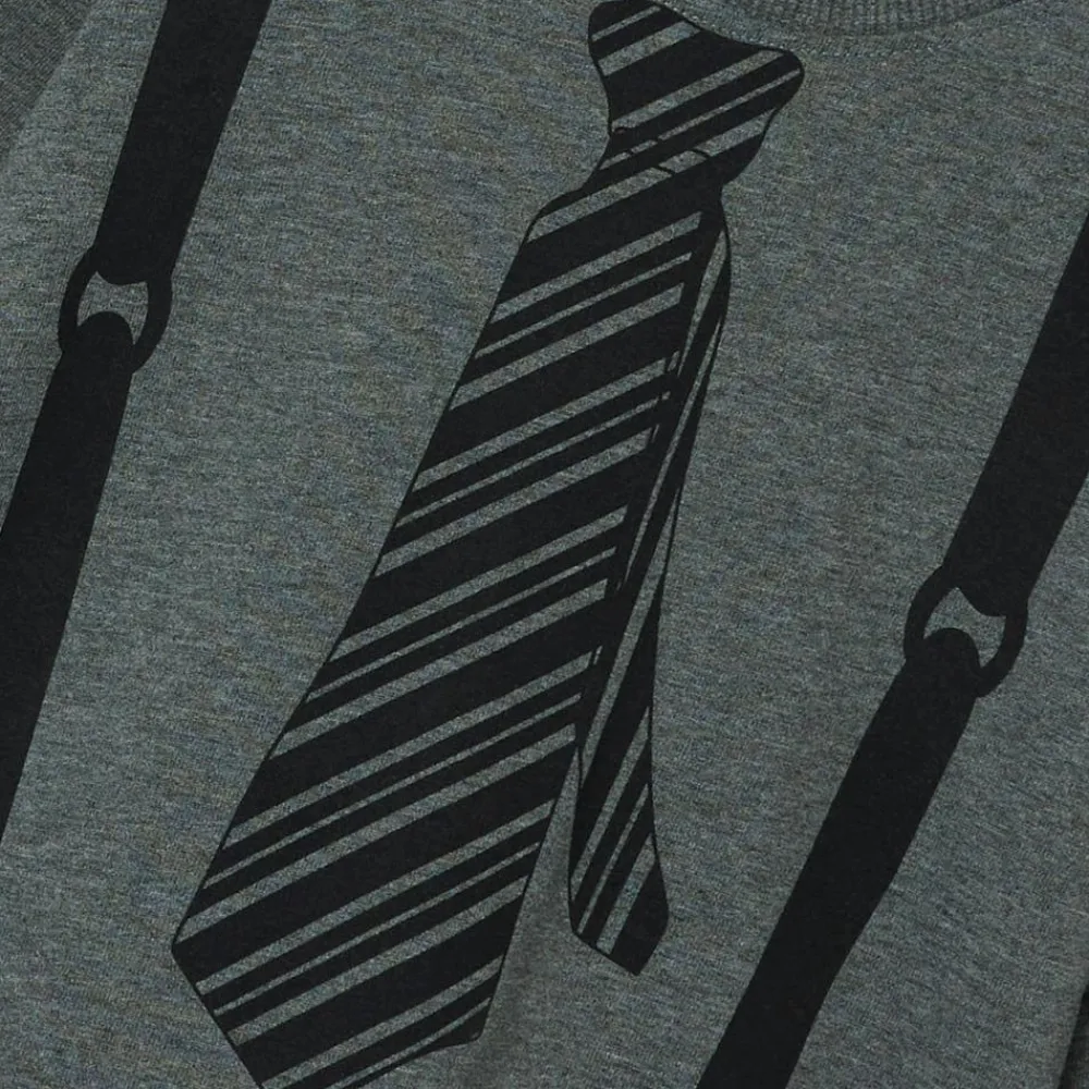 Guppy ensfarvet trøje med print af slips og seler på fronten. Trøjen har lange ærmer og en rund halsudskæring.