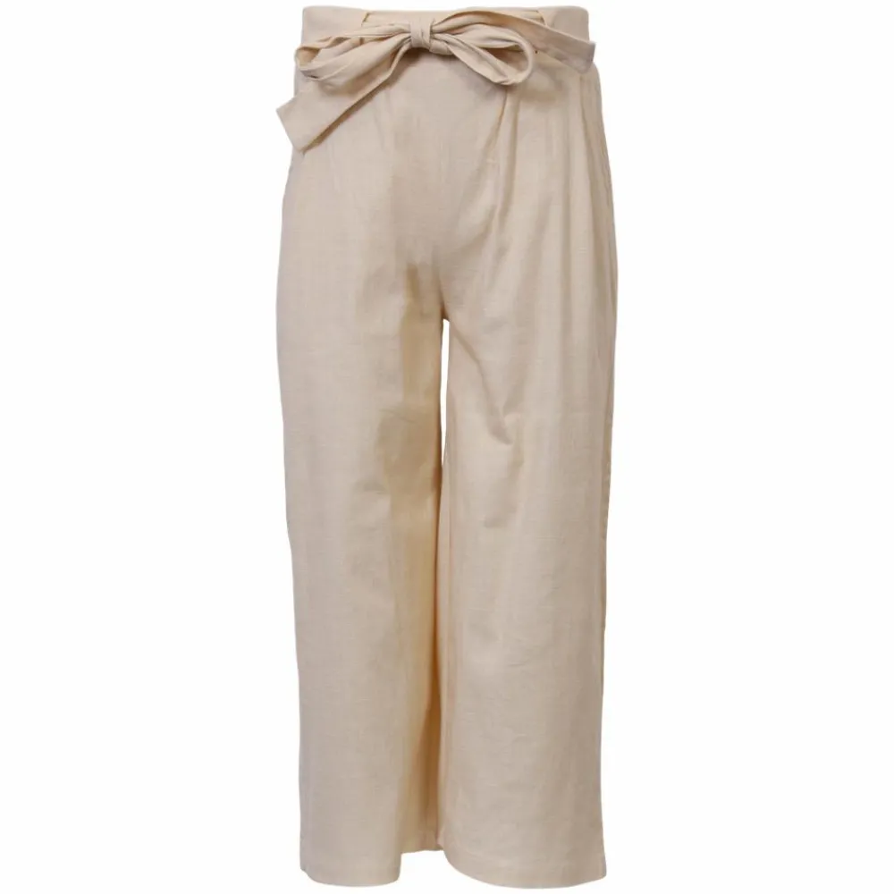 Løse pige bukser med lommer samt elastik og bindebånd i taljen.