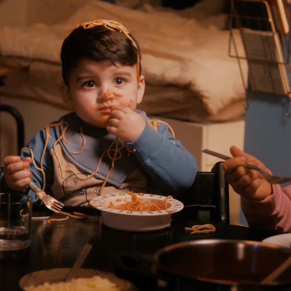 Fire forskellige farvede hagesmække med to justeringsmuligheder via trykknap.