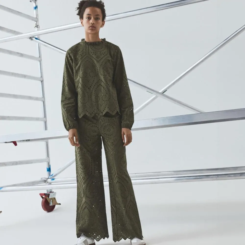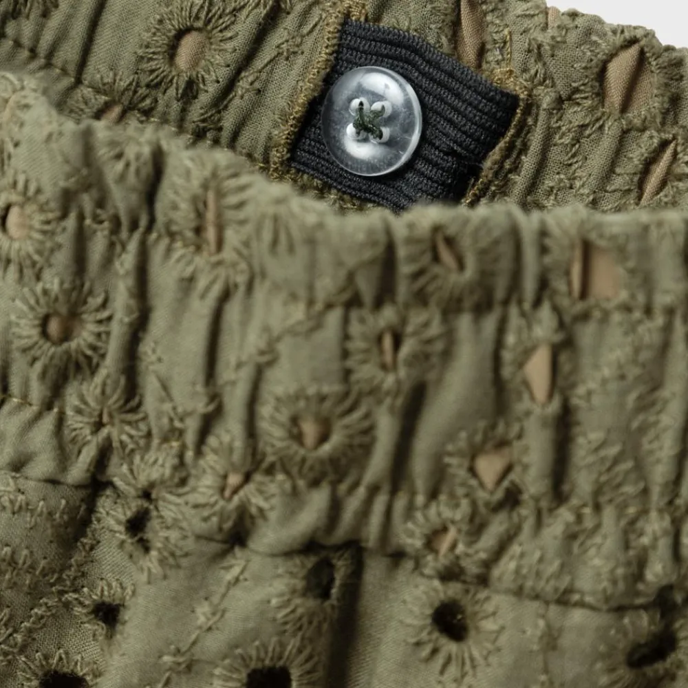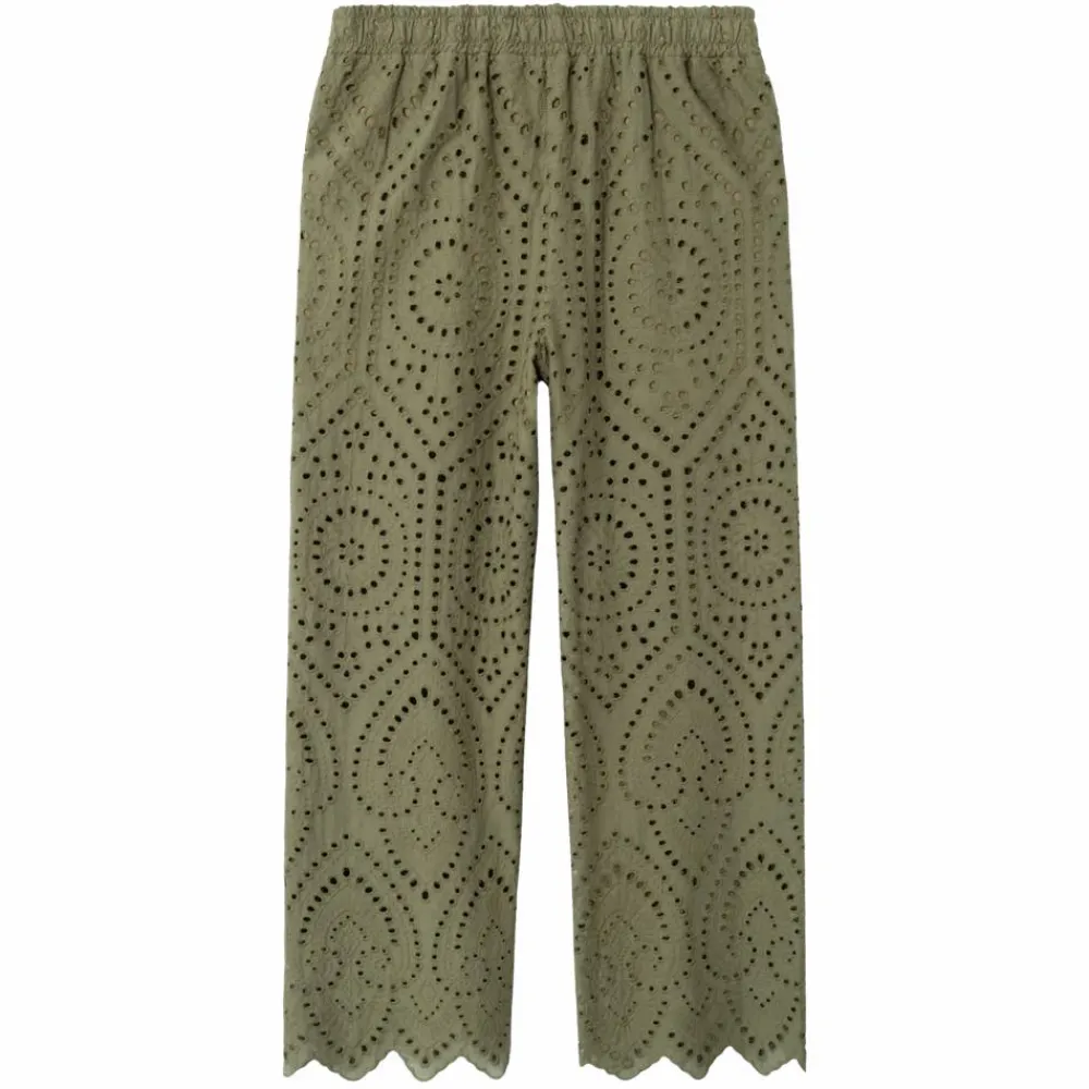 Lette og luftige vide bukser til tweens med hulmønster i det yderste lag stof. Bukserne har elastik i livet samt indvendig justerbar talje.