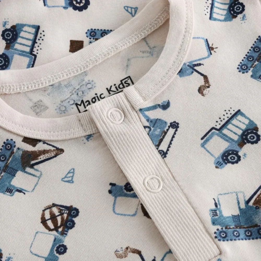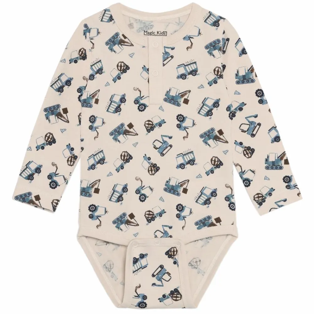 Magic Kids langærmet baby body med all over print. Bodyen er lavet i en blød, åndbar bomuldskvalitet. Den er designet med praktiske trykknapper foran og ved benene.