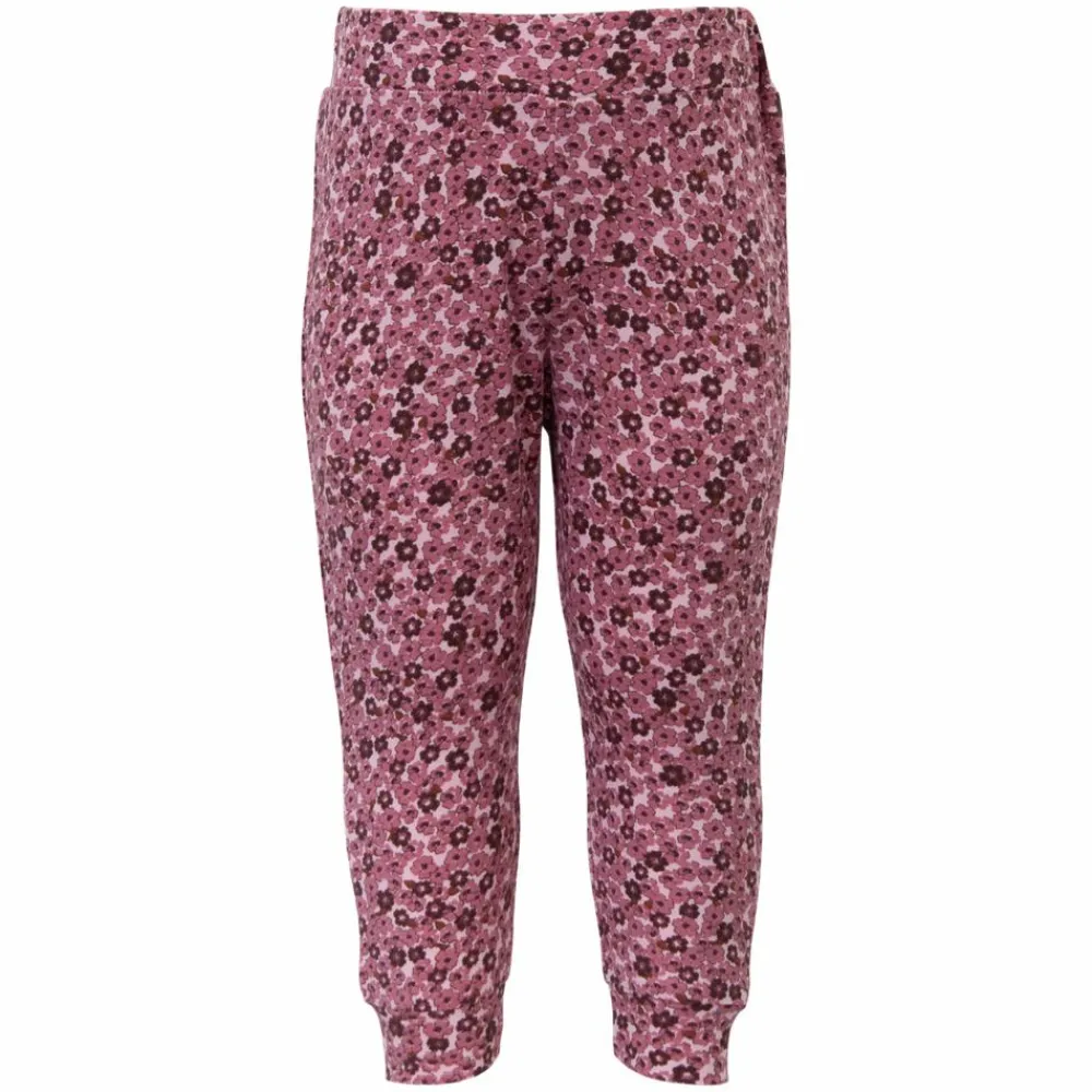 Baby bukser med stretch funktion og blomstret all-over print. Bukserne har elastikkant i talje samt i bunden af buksebenene.