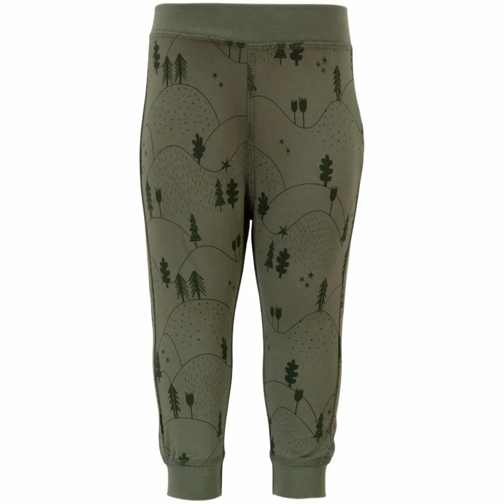 Me Too drenge joggingbukser i grønt bomulds- og elastanstof, med elastik i taljen, som gør at bukserne tilpasser sig om livet. Der er ribkant i buksens talje og bukseben.