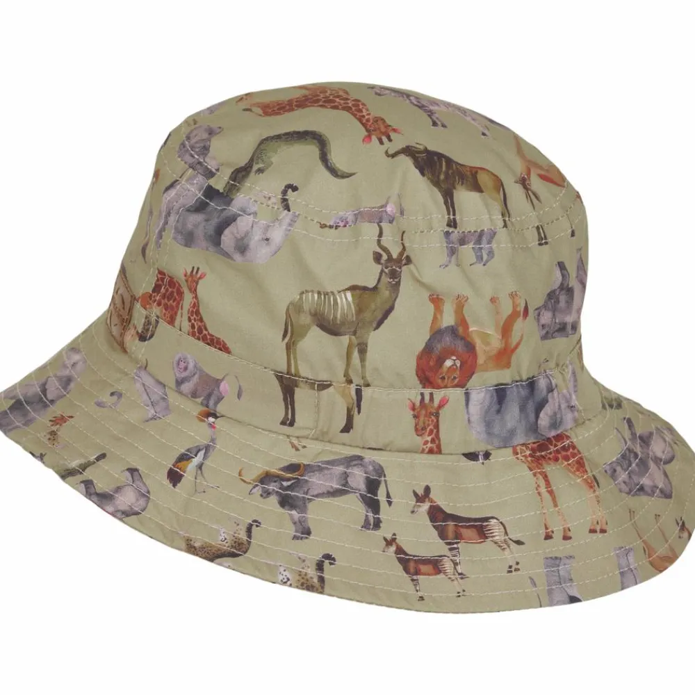 Mikk-line børne bøllehat med all-over print og med logo på siden. Bøllehatten har en bred skygge hele vejen rundt.
