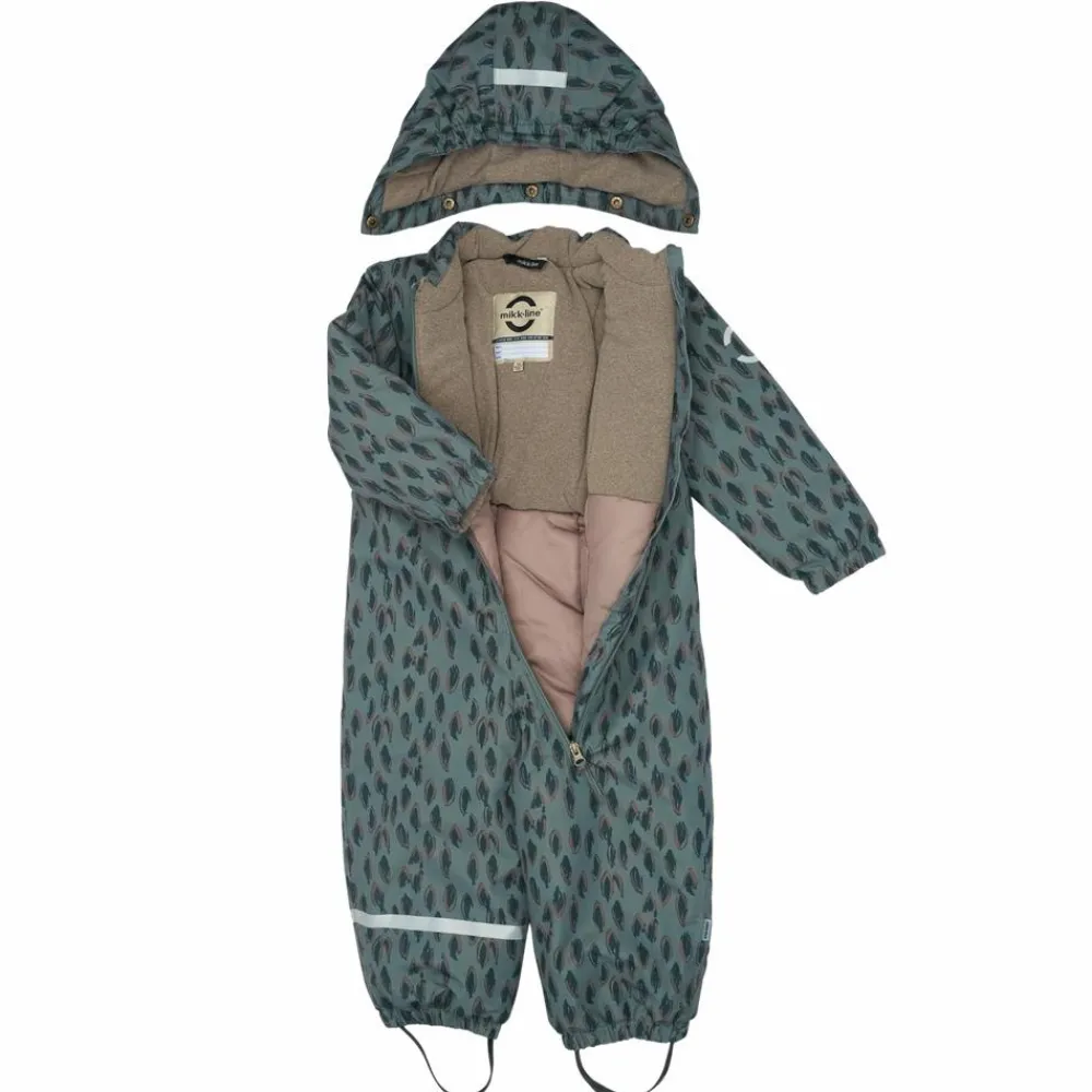 Mikk-line flyverdragt i flot all-over print til baby og børn, der elsker leg og eventyr i naturen og under åben himmel. Det er en holdbar nylon flyverdragt af høj kvalitet og enkelt design, der holder barnet varmt og komfortabelt i det kolde efterårs- og vintervejr med vind, regn og sne. Flyverdragten er lavet af nylon og polstret med polyesterfyld. Hætten og overkroppen har blødt fleece foer, hvorimod ærmerne og benene har en glat og gnidningsfri indvendig overflade. Dragten har en aftagelig hætte med trykknapper og justerbare og slidstærke silikone fodstropper under støvlerne.