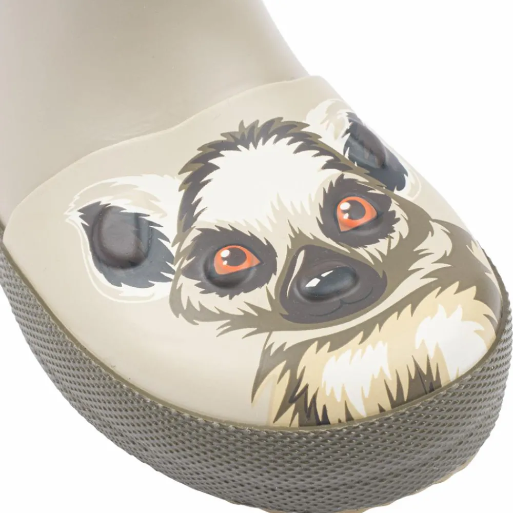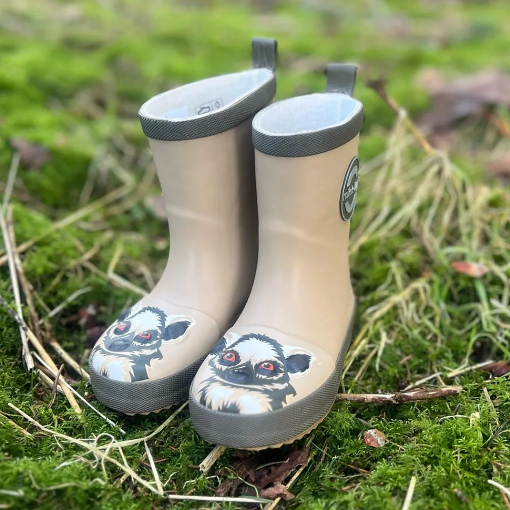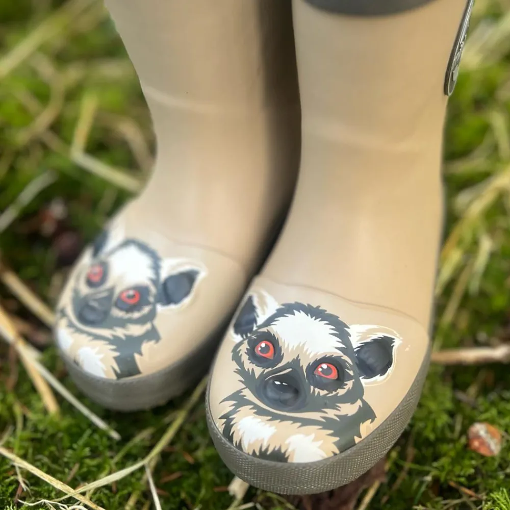 Mikk-line børne gummistøvler med lemur 3D print. Gummistøvlerne har refleks logo på ydersiden, samt har støvlerne refleks på hælkappen. Indvendig har gummistøvlerne en blød og udtagelig indersål. Gummistøvlerne har dybe riller under bunden, som gør at støvlerne har god fodfæste. Gummistøvlerne er vandtæt.