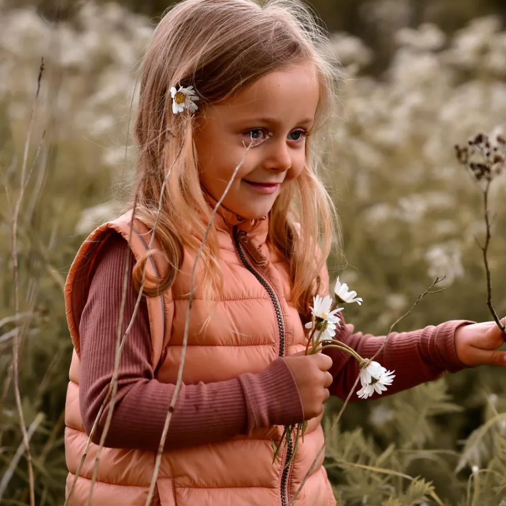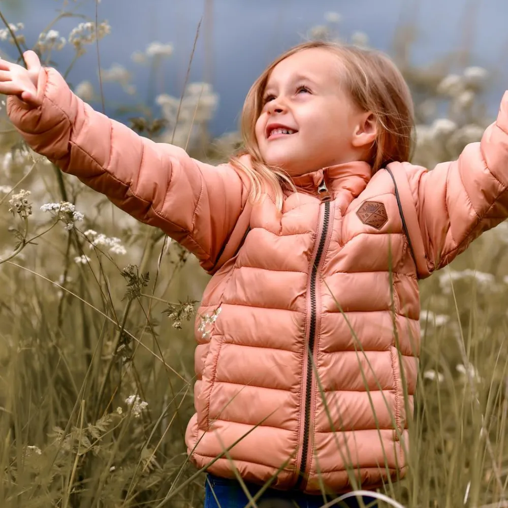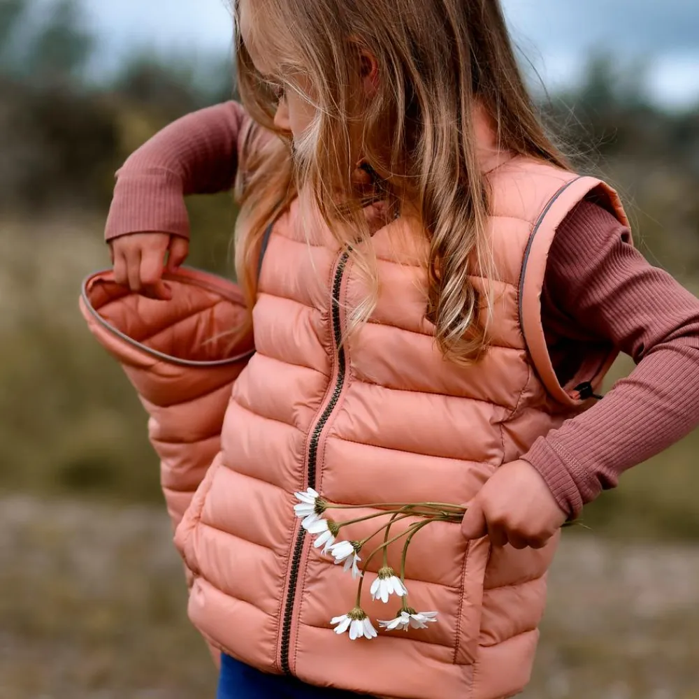 Mikk-line pige trendy 2-i-1 pufjakke, med mulighed for at lyne ærmer af og bruge den som en vest. Jakken har gennemgående lynlåslukning, to lommer samt høj hals.
