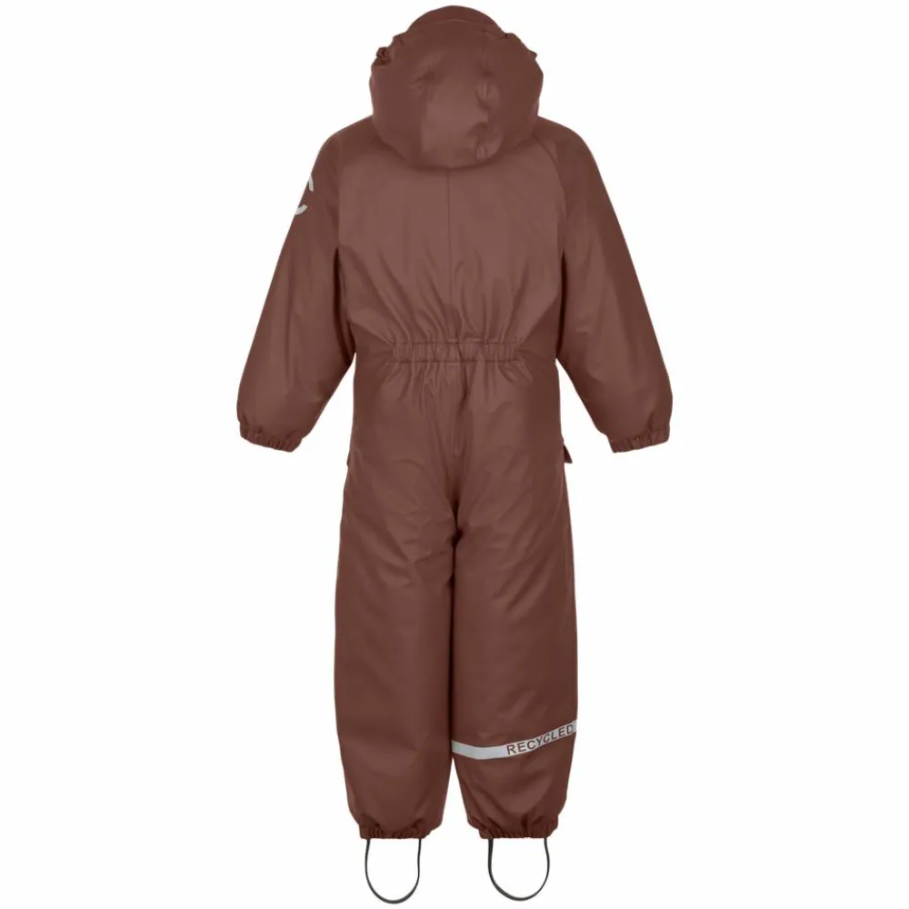 Ensfarvet PU flyverdragt designet til at de mindste børn kan have det sjovt med at plaske i vandpytter, mudder og boltre sig i sneen. Det er en praktisk flyverdragt, der kan modstå både mudder, regn, vind og kulde. Flyverdragten er lavet af genanvendt PU og polstret med polyesterfyld. Overkroppen, hætten, kraven, og lommerne har blødt fleece foer, hvorimod ærmerne og benene har en glat og gnidningsfri indvendig overflade. Overfladen på flyverdragten er blød, fluorfri, vand- og smudsafvisende, så når legen er ovre, og dragten er dækket af mudder, kan du let rengøre den med en fugtig klud.