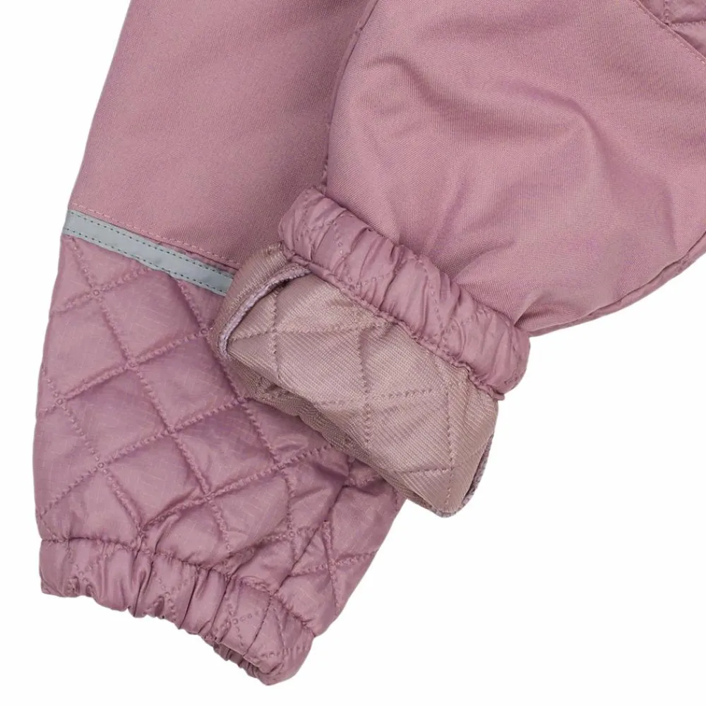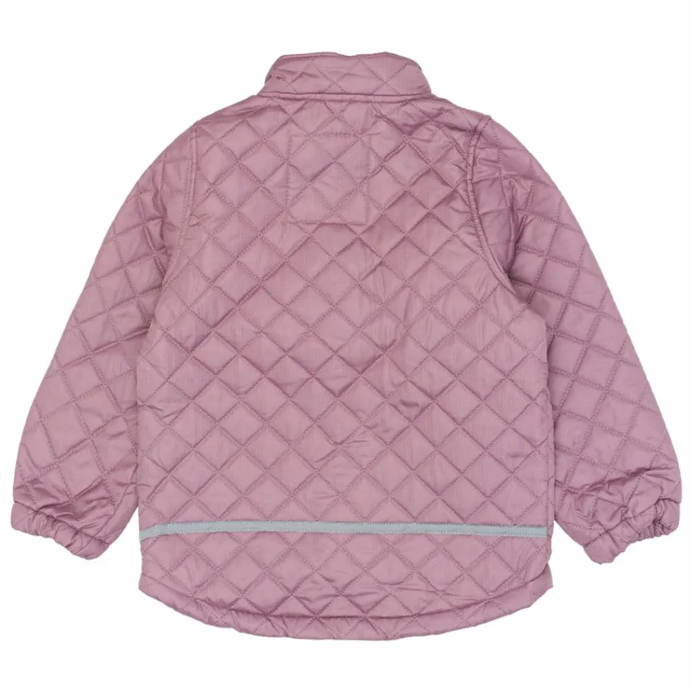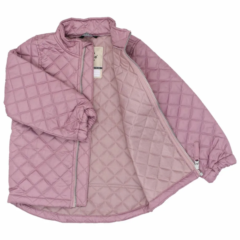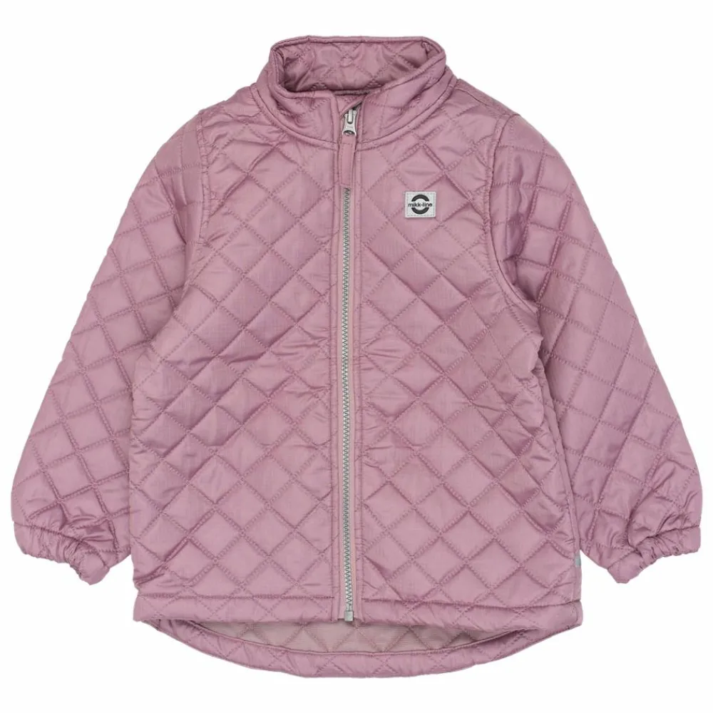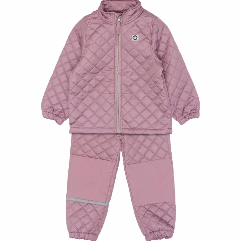 Mikk-Line termosæt. Perfekt overtøj til efterår og forår. Jakken har en klassisk pasform med gennemgående lynlås, høj krave og hagebeskytter. Jakken har elastik ved håndleddet, og termobukserne har elastik i taljen og ved fødderne, som holder vind ude og giver en god pasform. Den bløde vatterede kvalitet gør overtøjet behageligt for børnene at have på, samtidig med at tøjet giver varme uden at blive tungt. Termosættet er praktisk og stilfuldt og passer perfekt til aktive børn i de lange perioder imellem sommer og vinter.