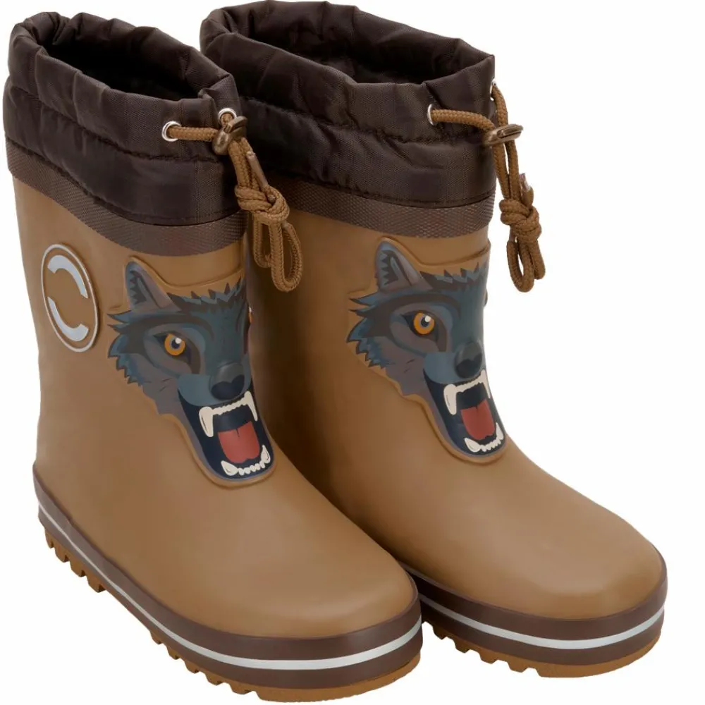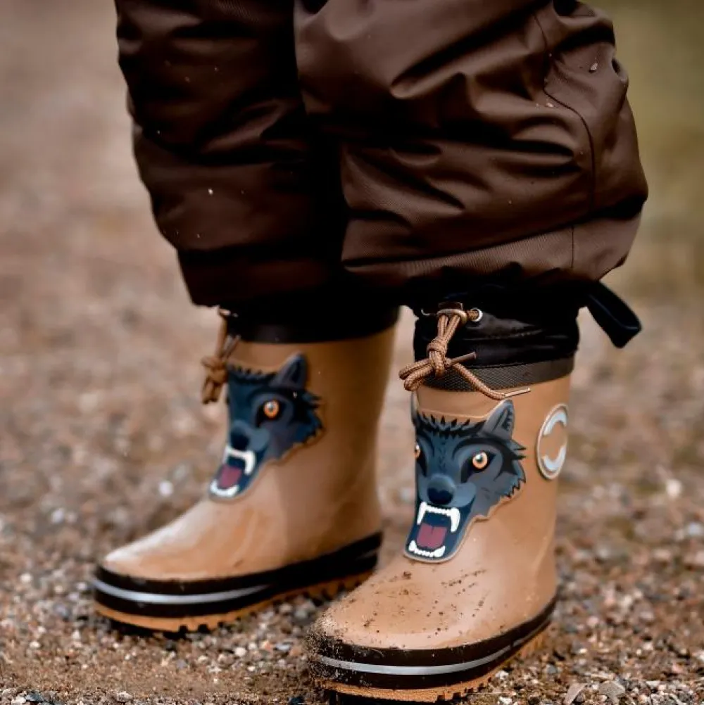 Mikk-line vintergummistøvler med lun foring lavet af 30% uld og 3D print detalje af et vildt dyr på støvleskaftet. Gummistøvlerne er lavet af naturlig gummi og fri for ftalater. Støvlen er udstyret med snørebånd til at justere toppen af gummistøvlen og minimere risikoen for at få vand eller sne i støvlen. Derudover har støvlen en skridsikker og fleksibel ydersål med riller, 3M-reflekser som gør barnet mere synligt i mørket samt en blød aftagelig indlægssål.