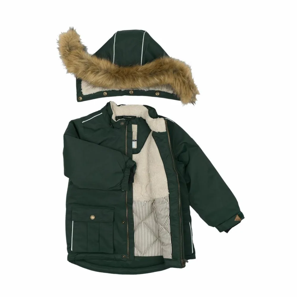 – Ensfarvet med et smukt og stilrent design med pelskrave.