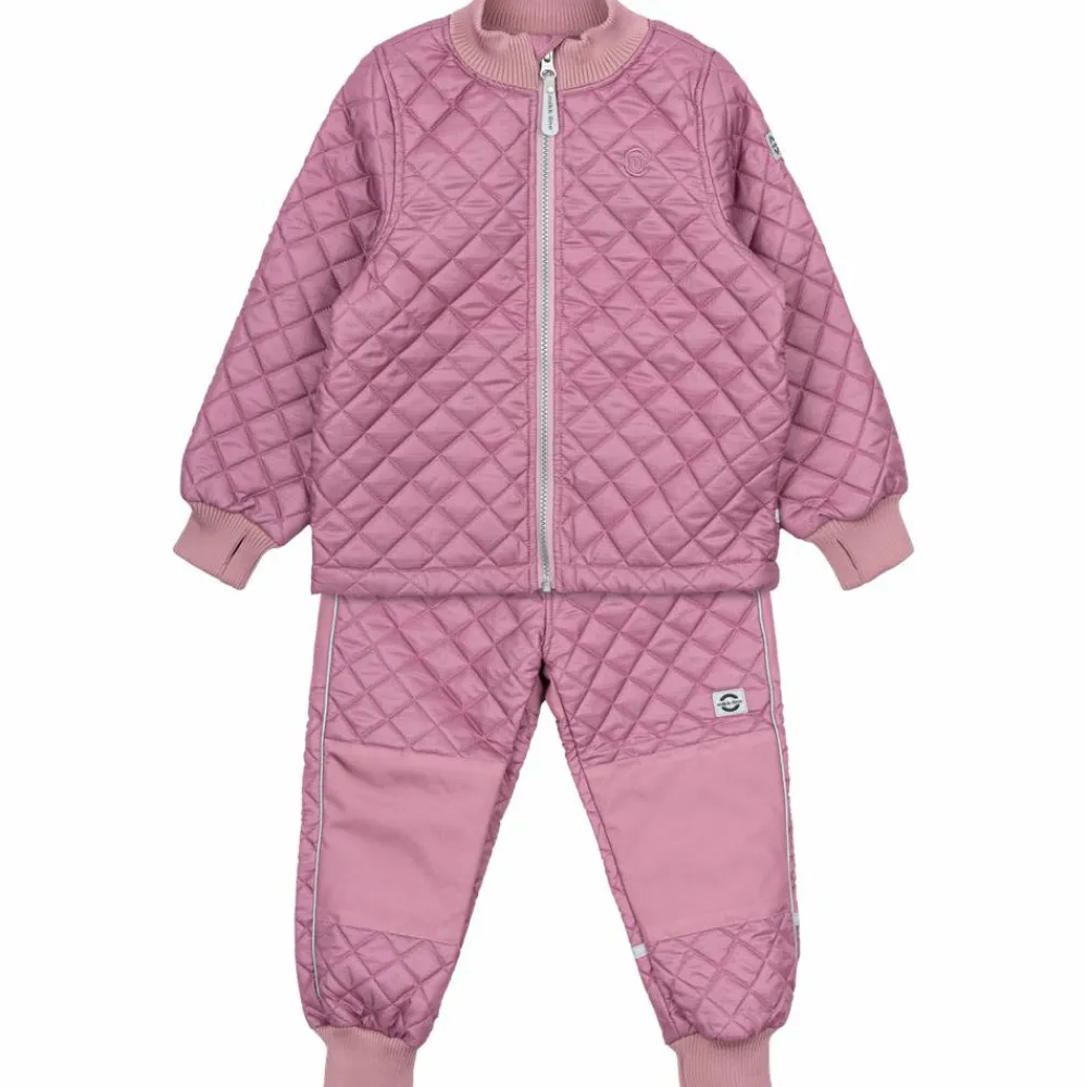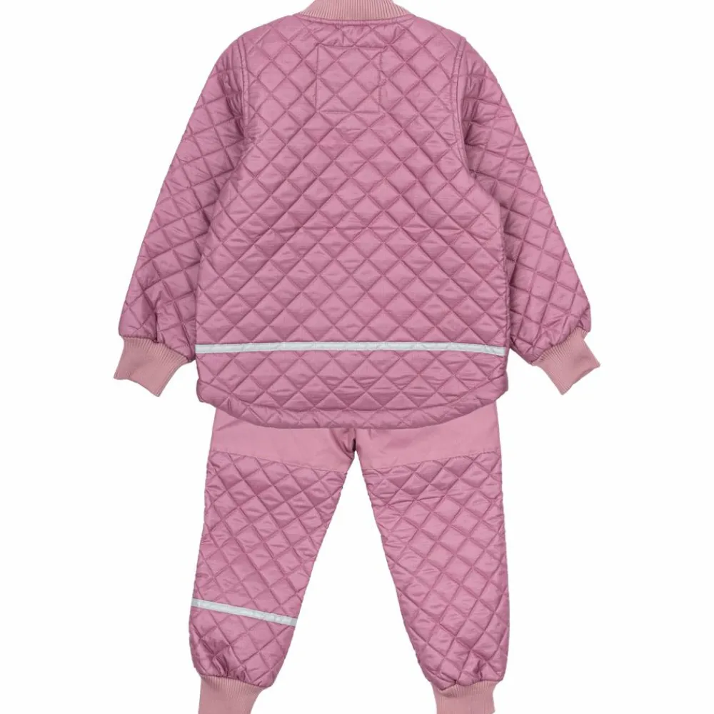 Mikk-line børne termotøj. Termosættet er vandafvisende og vindtætte, samt har sættet reflekslogo og refleksbånd, som gør at børn kan ses i mørke. Bukserne har forstærkninger på knæene og bag på bukserne, som gør bukserne ekstra slidstærke. Bukserne har elastik og justerbar talje, som gør at bukserne kan tilpasses om livet. Sættet har ribkant om halsen, ærmerne og i bunden af bukserne.
