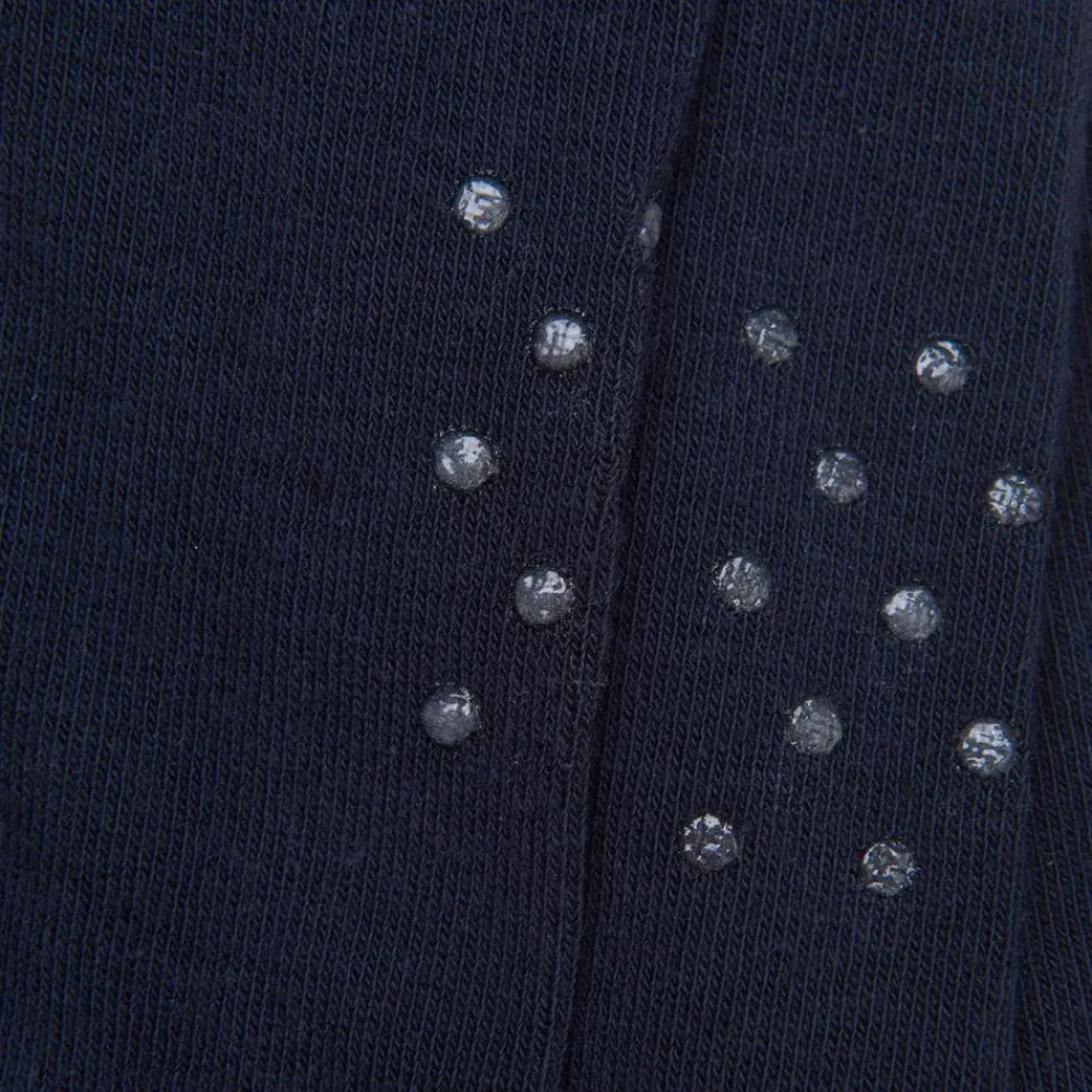 Skridsikre baby kravlestrømpebukser med gummi dutter på knæ, tæer og under foden. Gummi dutterne gør, at det er nemmere for barnet at stå fast, når det skal lære at kravle og gå. Strømpebukserne er lavet i et lækkert materialemix, som gør at der er masser af stretch og giver en god bevægelighed.