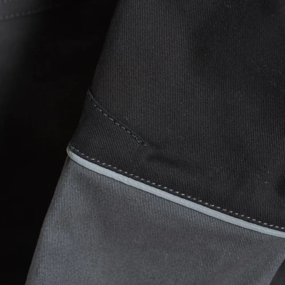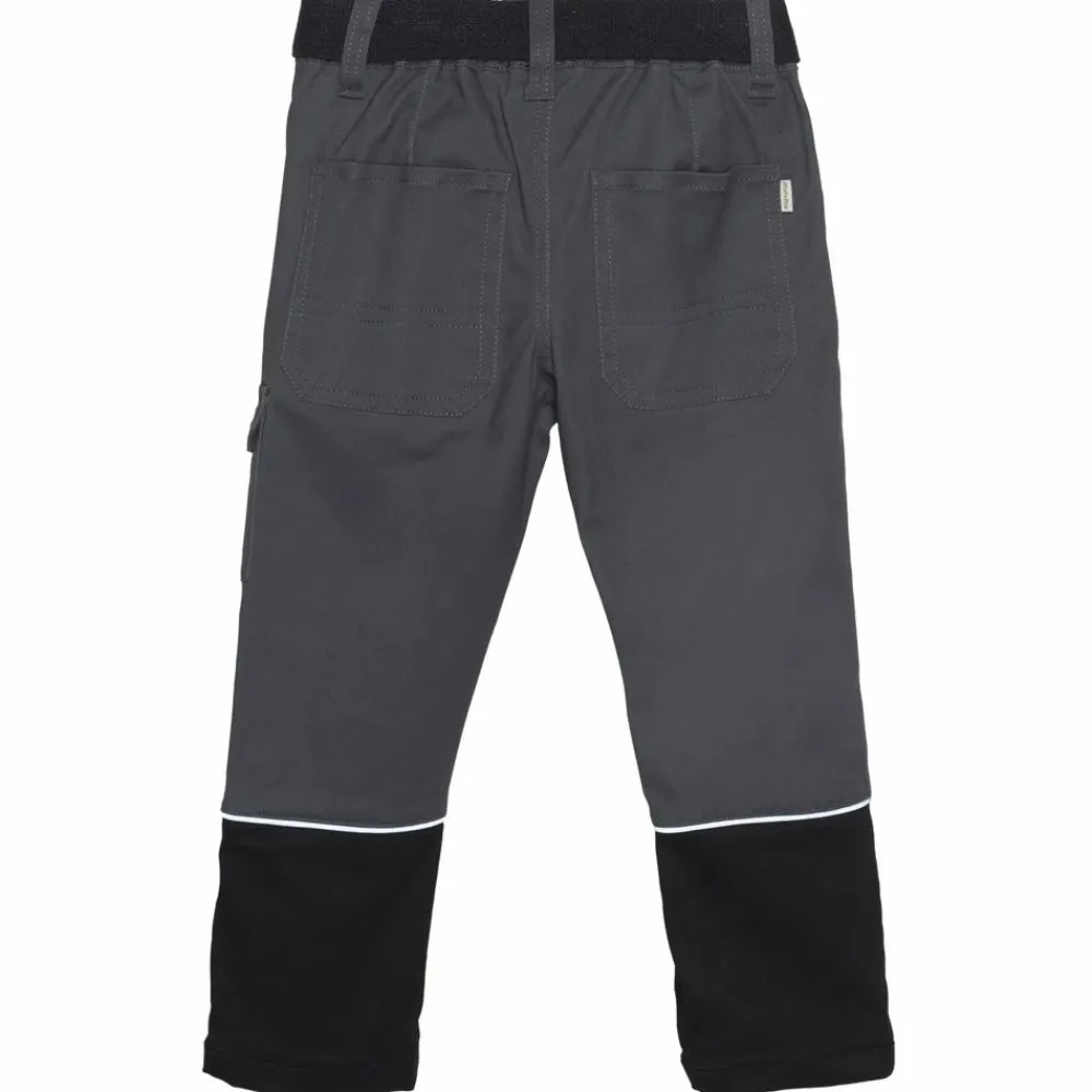 Minymo arbejdsbukser i slidstærk og strækbar kvalitet, med refleks på fronten og bagsiden. Bukserne har elastik og justerbar talje. Omkring taljen er der en spænde, samt er der lynlås og trykknapper. Lommer foran, bagpå og ved knæet.