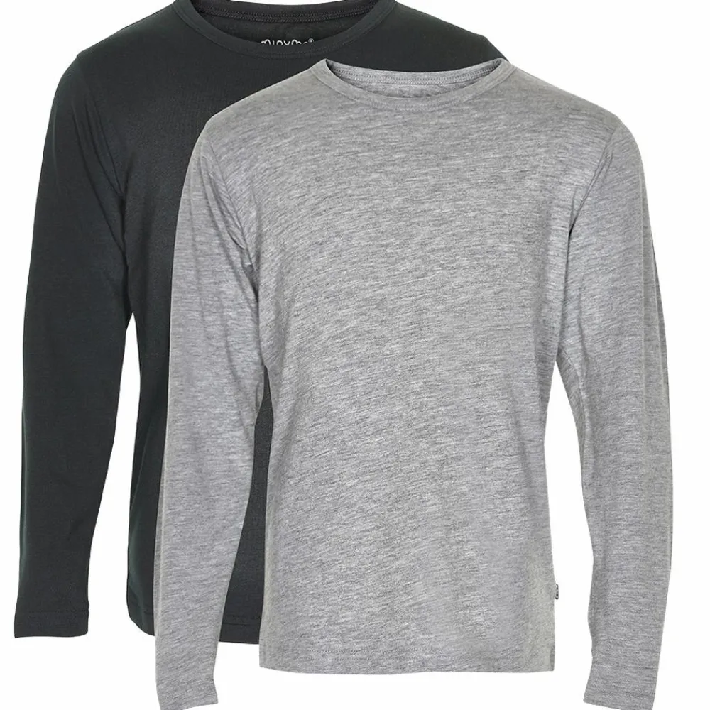 Minymo langærmet drenge t-shirt 2-pak. Lækre bluser med lange ærmer og rund halsudskæring.