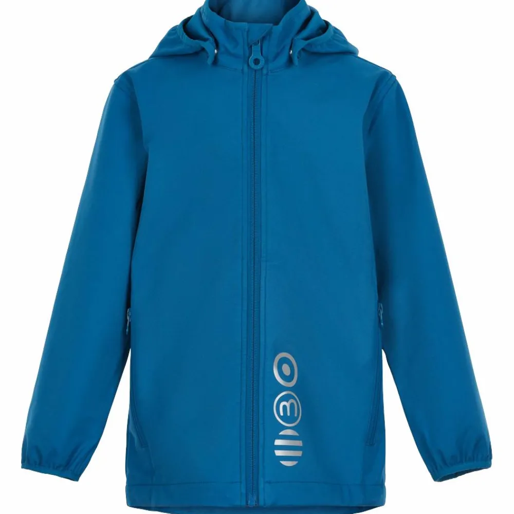 Minymo Softshell jakke med vand- og smudsafvisende belægning. Jakken har praktiske refleksdetaljer på fronten og bagsiden, hagebeskytter og en aftagelig hætte, som er fæstnet med velcro og to trykknapper foran. Den superanvendelige jakke har også to fine lommer med lynlåse af høj kvalitet. Softshelljakken har lynlåsåbning og indvendig vindstolpe.