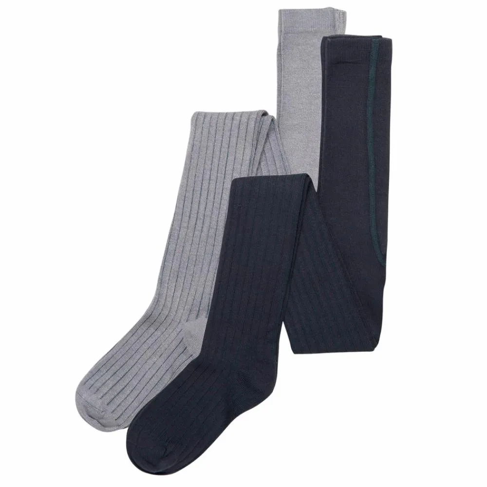 2-pak Minymo ribstrikkede strømpebukser i bambus. Pakken består af to par strømpebukser, hvor begge er ensfarvede.
